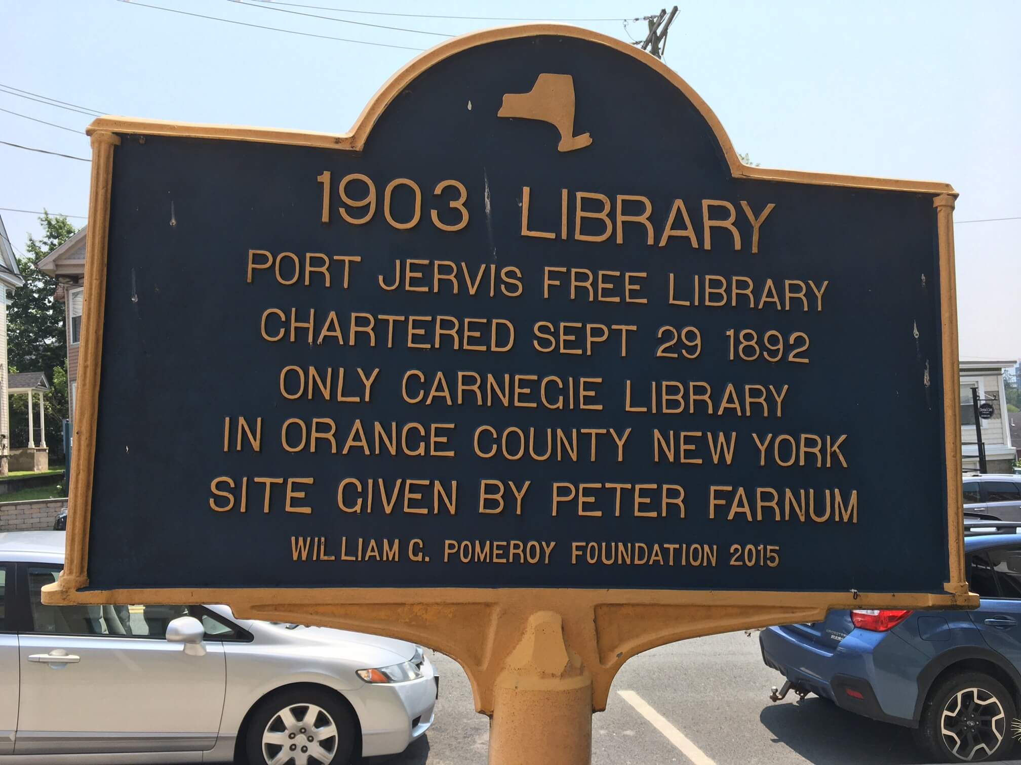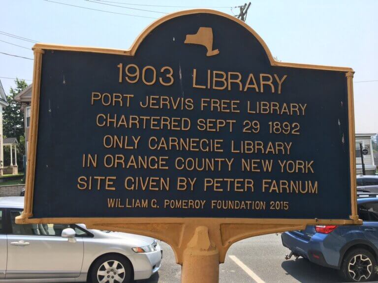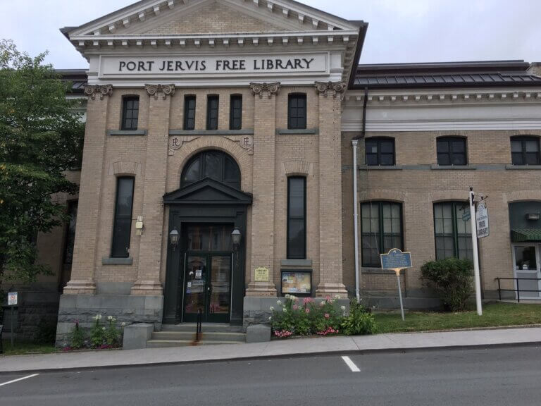 Completed in 1903, the Port Jervis Free Library building is a Carnegie Library, the only one of its kind in Orange County. Built with funding from the Andrew Carnegie Foundation, the library’s charter dates back to September 1892, prior to the building’s construction—the first library in New York State, according to Minisink Historical Society, to receive a charter from the New York State Board of Regents.