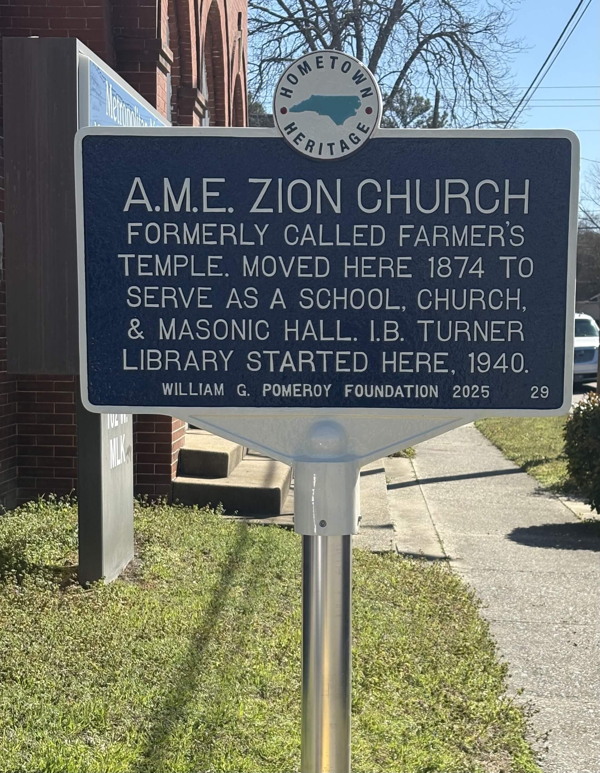 The Metropolitan A.M.E. Zion Church in Washington, NC is remembered by the community to have been founded in ca. 1841. Originally called “Farmer’s Temple”, the church served the African American community in the area. During the Civil War the city of Washington faced destruction, and it is thought that the church’s former structure was burned down twice, once in 1862 and again in 1864.