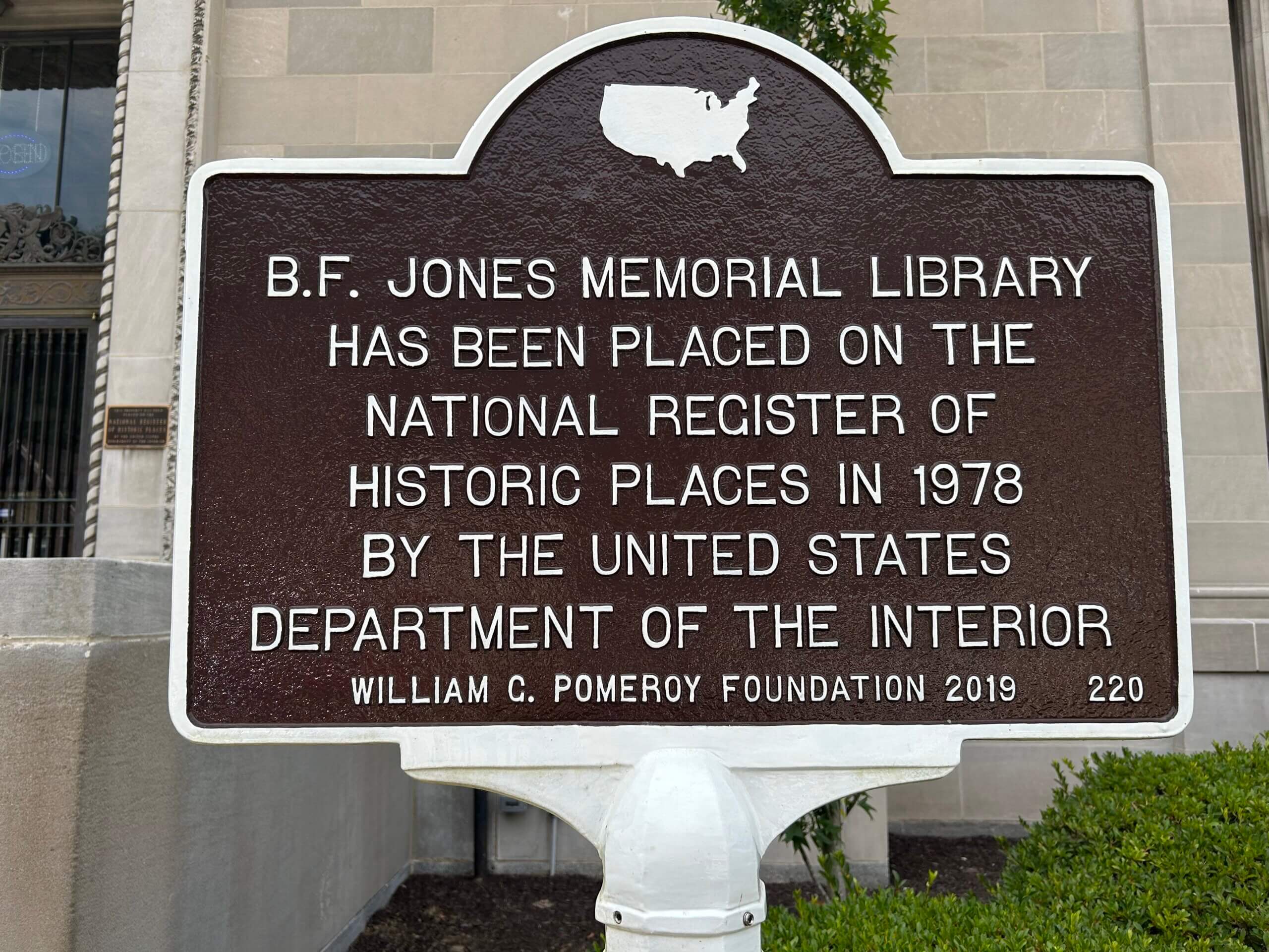 B.F. JONES MEMORIAL LIBRARYHAS BEEN PLACED ON THE