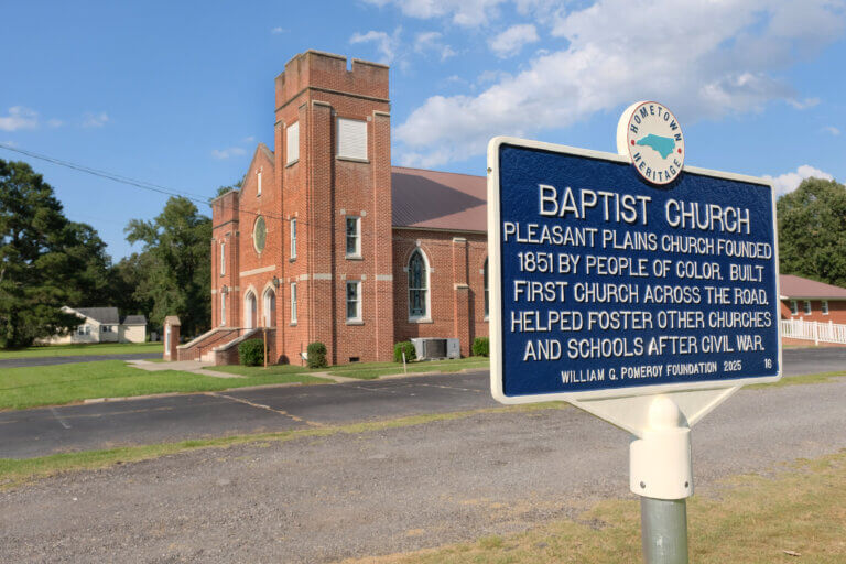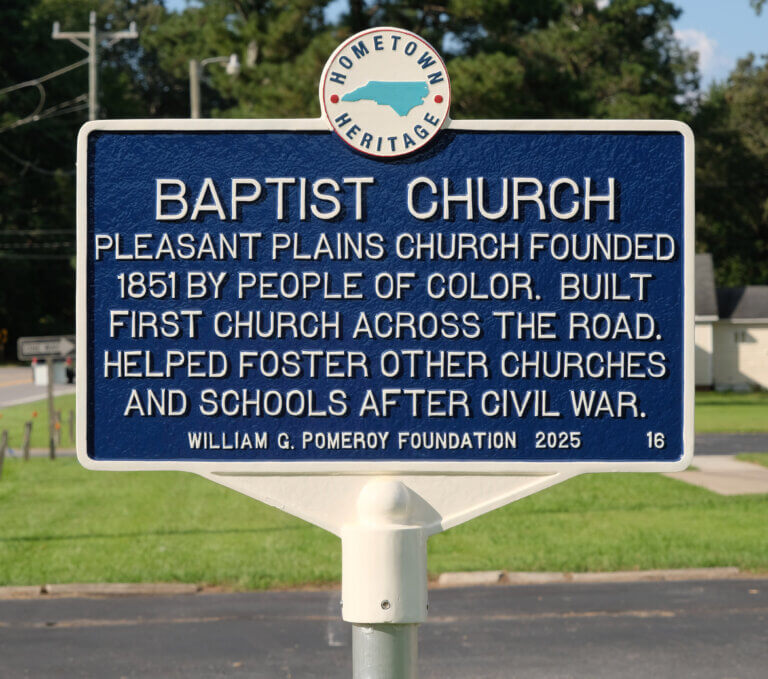 The Pleasant Plains Baptist Church, constructed in 1951, sits across the road from the site of the original 1851 and ca. 1870 chapels. Founded 14 years before the end of the Civil War and slavery, the church is a forerunner of many churches of color. When people of color were restricted in their worship and religious gatherings during slavery, Pleasant Plains Church led the way for the establishment of other churches in the area. Its leaders established schools and supported other schools and churches. After the church organized, the Reverand Thomas Hoggard was chosen as the first pastor and served through 1875. Unfortunately, many of the church records and documents were destroyed by a fire that burned the home of the church clerk on December 24, 1941. (Historical Sketch of the Pleasant Plains Baptist Church, 1951)
