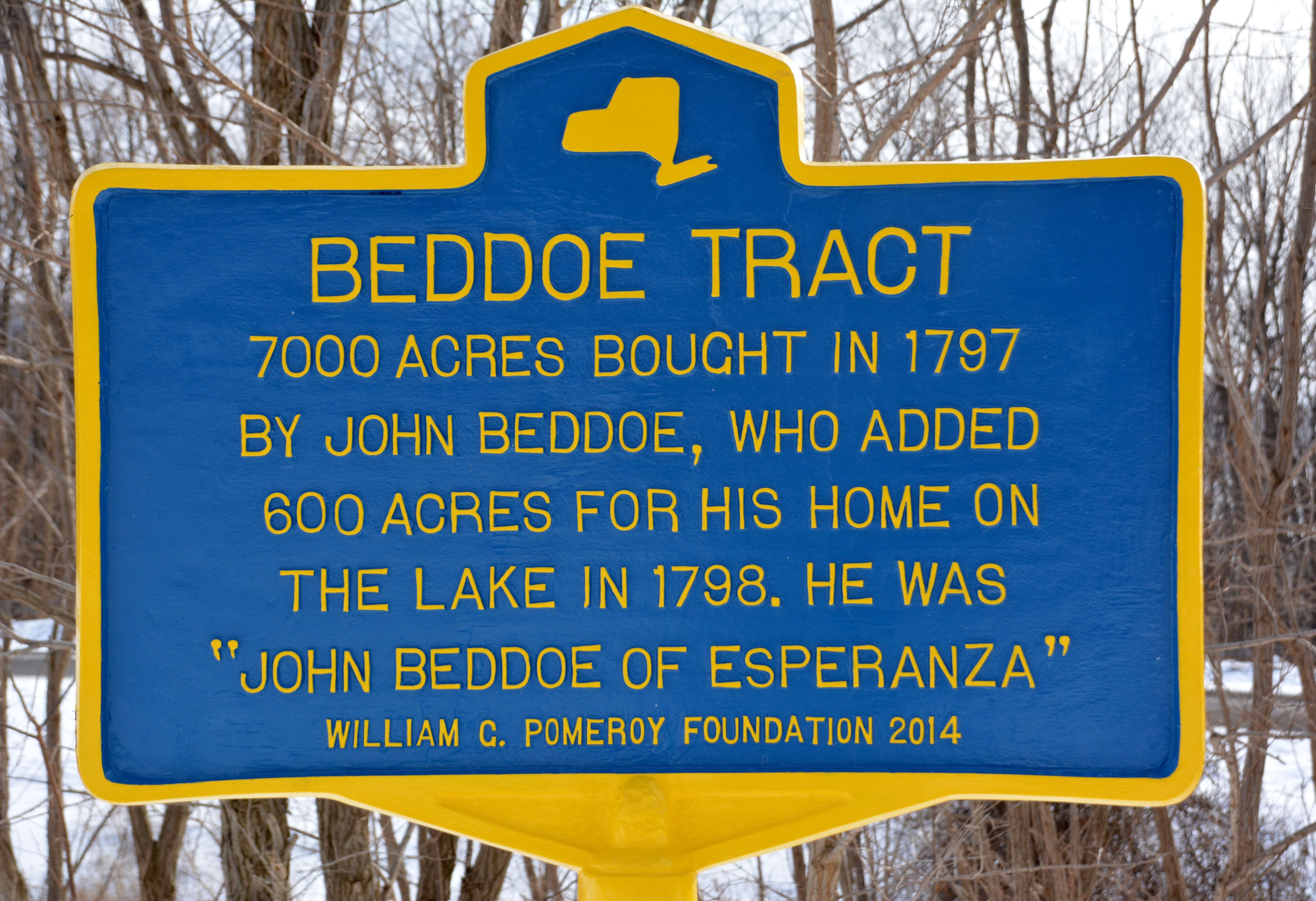 John Beddoe emigrated from Wales, acquiring a large tract of land along Keuka Lake. He named his estate “Esperanza”, the Spanish word for “hope”. The exact location of the original home is unknown.