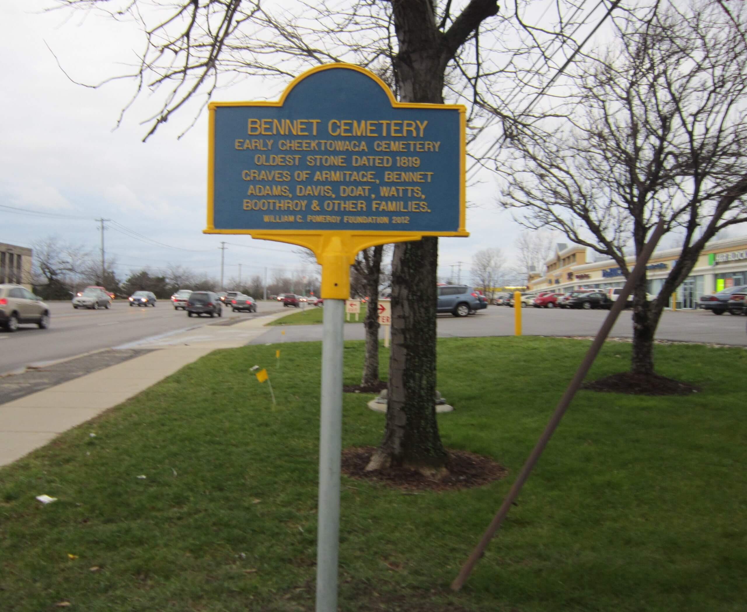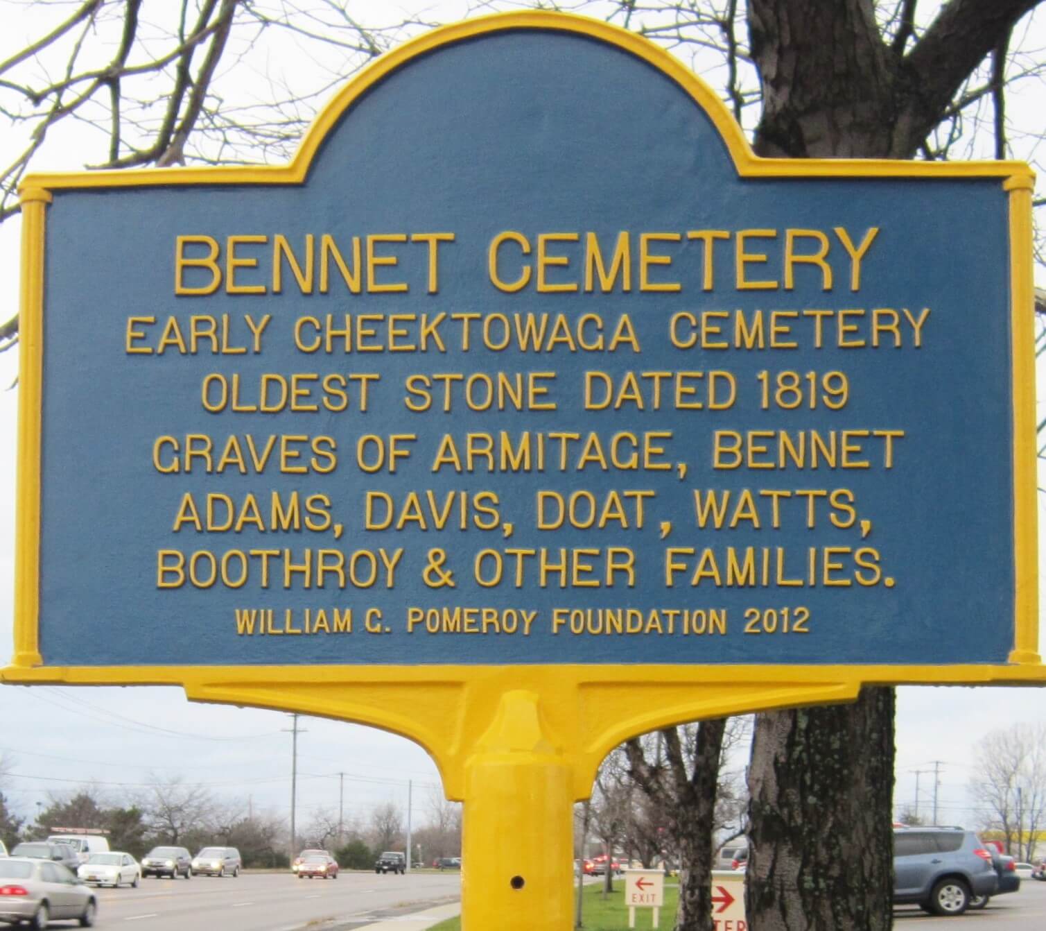 Bennet Cemetery is an early cemetery in which numerous Cheektowaga residents are buried. The oldest stone dates back to 1819.