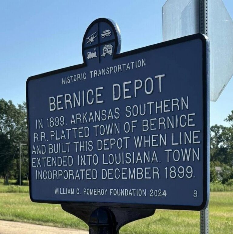 By July 21, 1899, the Shreveport Times stated that $14,000 worth of lots had been sold in the new town of Bernice. The Times also reported that at that point, Arkansas Southern had continued its extension into Louisiana, completing its line within 14 miles of Ruston, Louisiana, about 20 miles south of Bernice. By November 28, 1899, the New Orleans paper the Times-Democrat reported that the line had finally been completed to Ruston, noting that this “had been delayed by the tremendous caves in the side of a forty-foot cut twelve miles north of Ruston.” That December, the town of Bernice was officially incorporated.