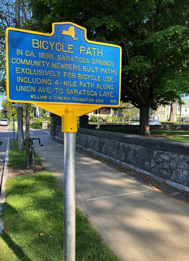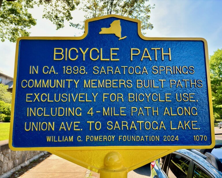 One of the paths listed in the visitor’s guide was a four-mile route along the south side of Union Avenue in Saratoga Springs to nearby Saratoga Lake. By 1901, bicycle paths in Saratoga Springs were reported to cover “miles of territory of the most beautiful description” (Troy Daily Times, June 29, 1901).