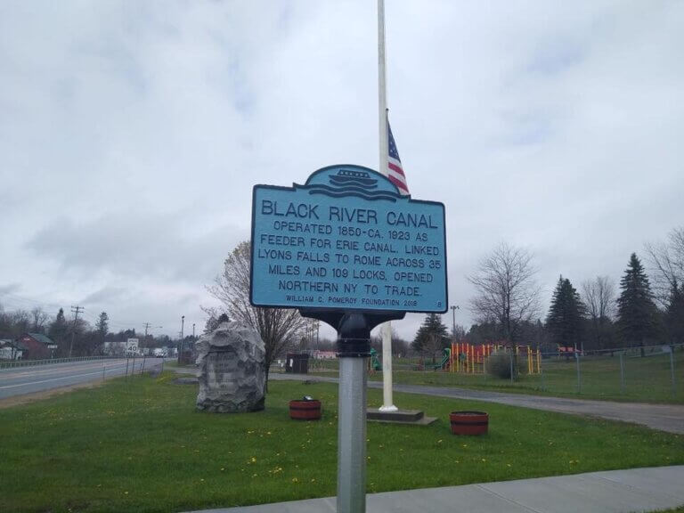 Remnants of the Black River Canal can be found in Boonville, NY. Construction began on the Erie Canal in 1817. It took nearly a decade to build, but once completed the Erie Canal was an amazing feat of modern engineering. Spanning 363 miles, this artificial waterway featured locks, bridges and aqueducts which traversed the diverse geography of New York State and effectively connected the East Coast to the Great Lakes. Soon thereafter additional sections began to branch off the main canal. One such section was the Black River Canal. Opening in 1850, the Black River Canal initially served as a feeder canal which supplied water from the Black River to the Erie Canal. This canal was 35 miles long, featured 109 locks, and connected Lyons Falls to Rome. The Black River Canal served as a vital conduit that opened northern New York State for trade. Despite the wealth and prosperity the Black River Canal brought to the region, it eventually fell into disuse and ceased operation around 1923.