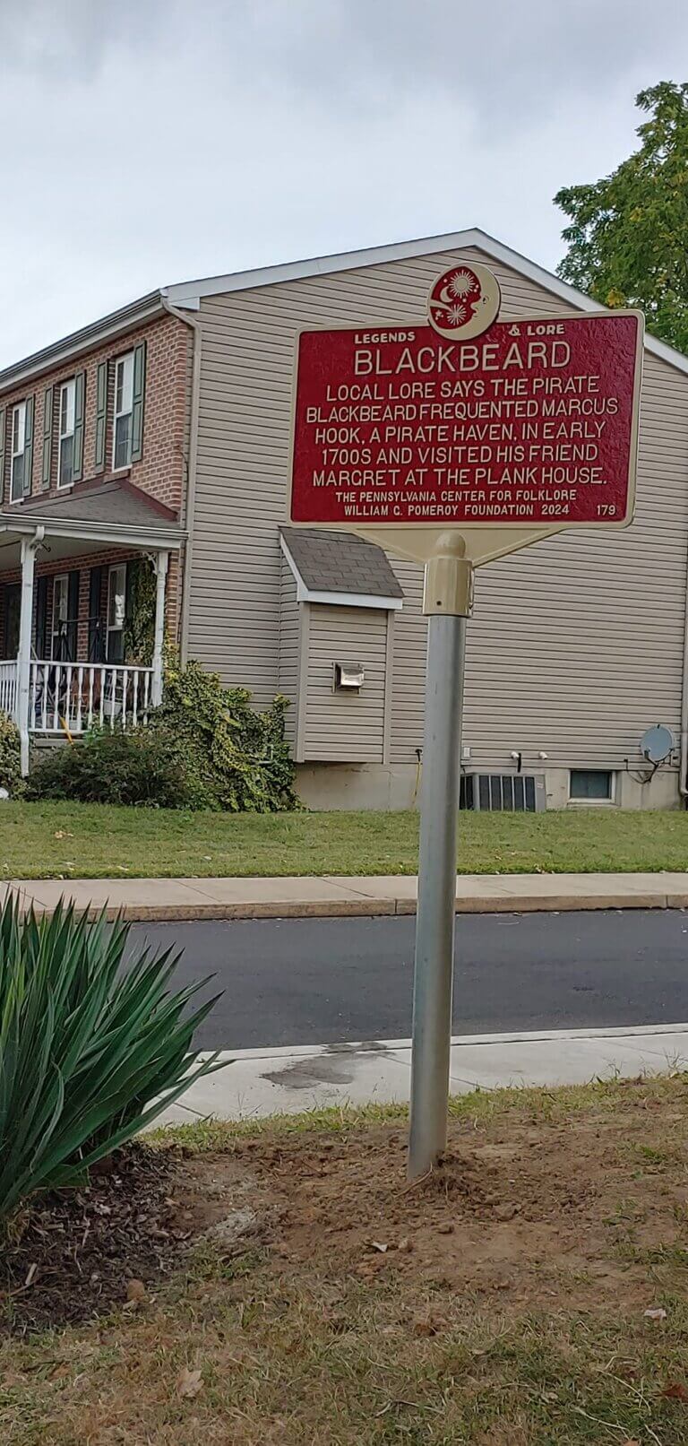 In Marcus Hook, Pennsylvania, a local legend is told about the infamous 18th century pirate Blackbeard. It is believed that in the early 1700s, Marcus Hook was a haven for pirates and served as a marketplace to sell plundered goods and supplies out of sight of officials in Philadelphia. According to legend, Marcus Hook was also the home of a Swedish woman named Margret, who happened to be the supposed mistress of Blackbeard. While sojourning in Marcus Hook, the notorious pirate is said to have visited Margret at her house, now referred to as the Marcus Hook Plank House.