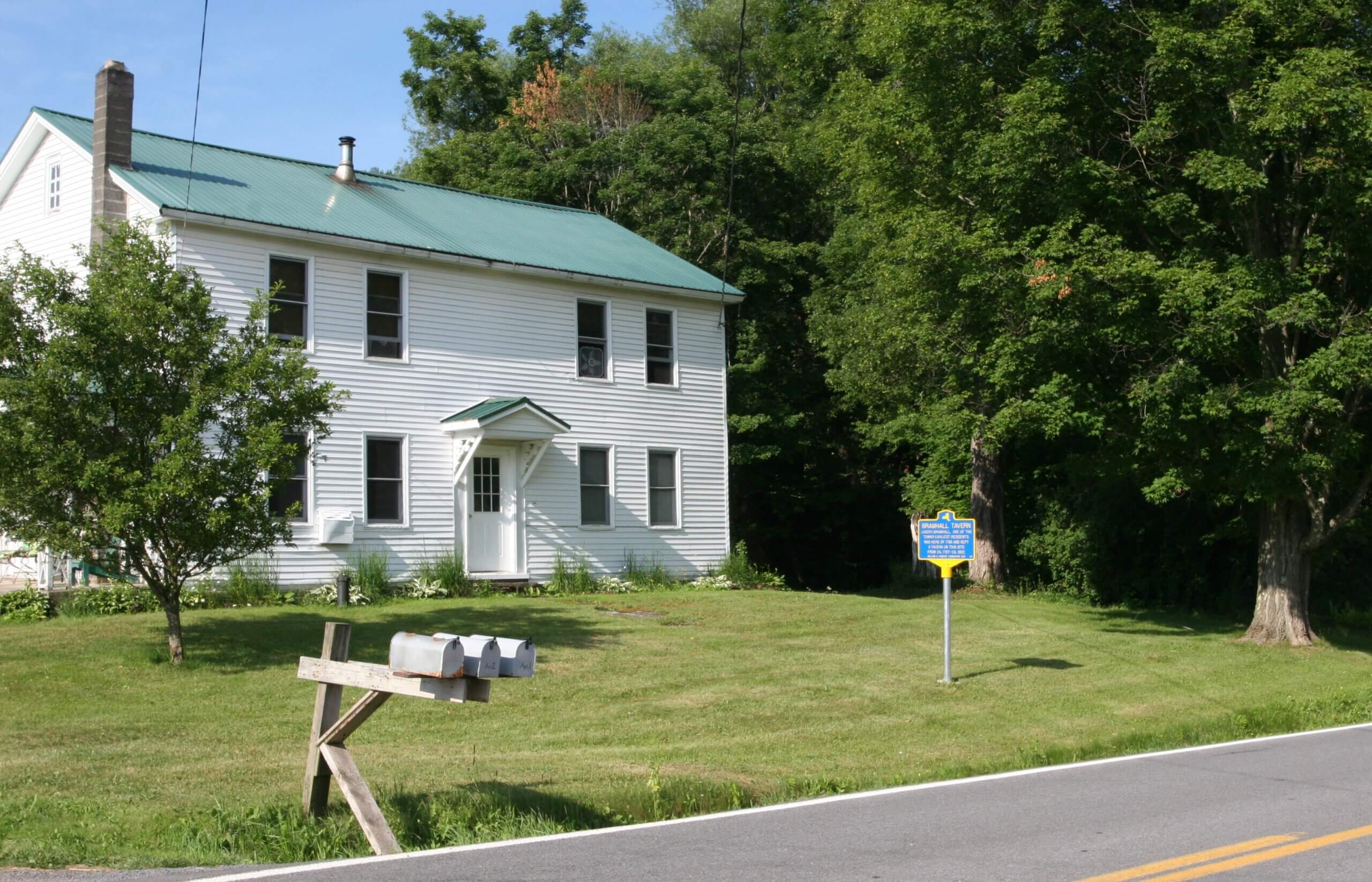 Historically, taverns played an important role in the development of communities as a meeting place for local residents or to serve travelers by providing lodging, food, and spirits. Joseph Bramhall was one of the earliest residents in the Meredith community, arriving around 1790. He established a tavern, known as Bramhall’s Tavern, which operated at this site from 1797 until 1802. Aside from Joseph Bramhall and a handful of residents, the Town of Meredith, was sparsely populated. However, Bramhall’s Tavern was in an ideal location, situated alongside a state road and main route frequented by travelers. The tavern thrived and remained in operation for several years.