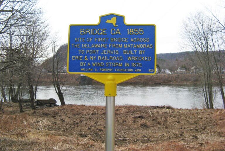 Joining Matamoras, PA, and Port Jervis, NY, the original bridge replaced an earlier rope ferry. The opening of the bridge circa 1855 enabled a greater influx of goods and workers to Port Jervis.