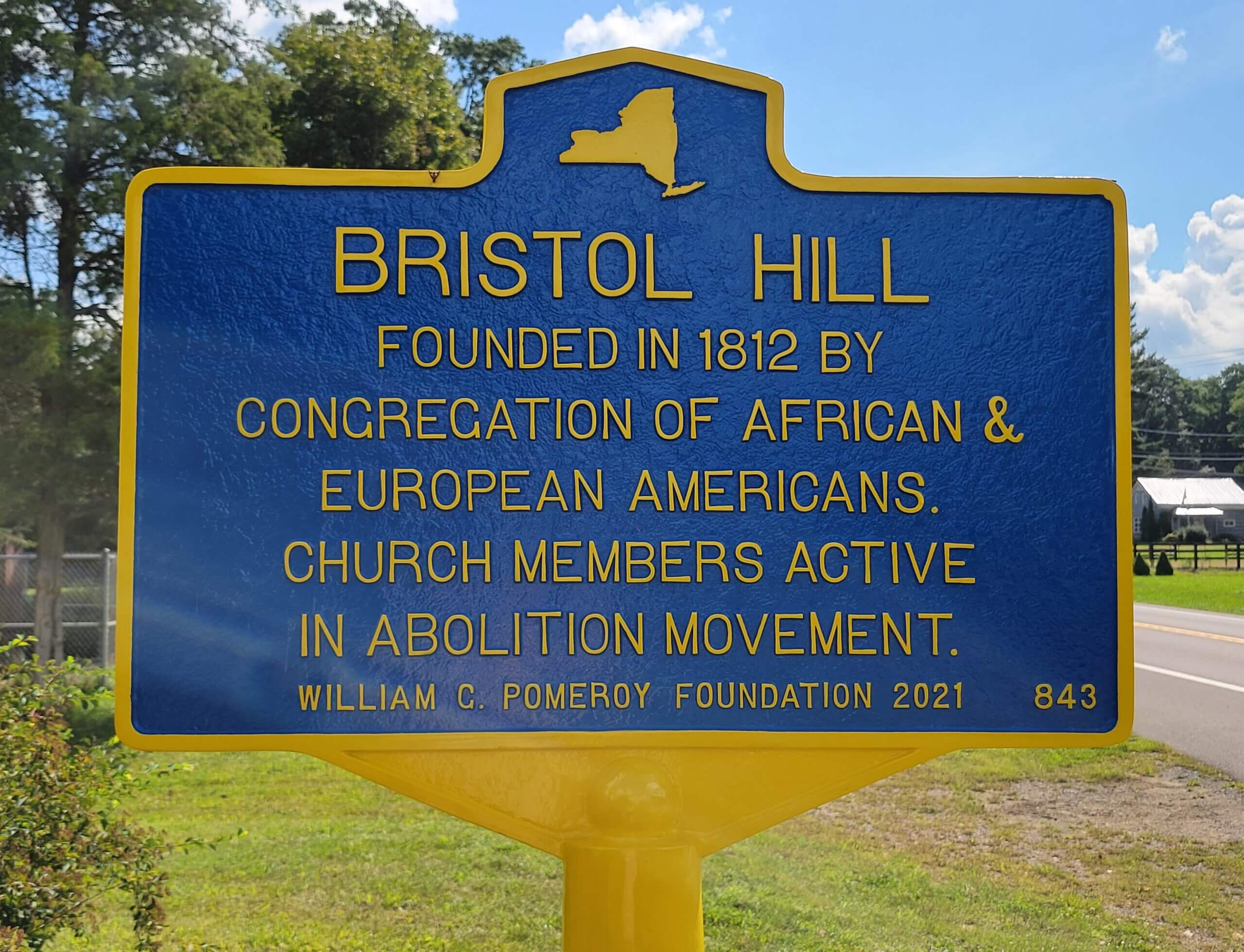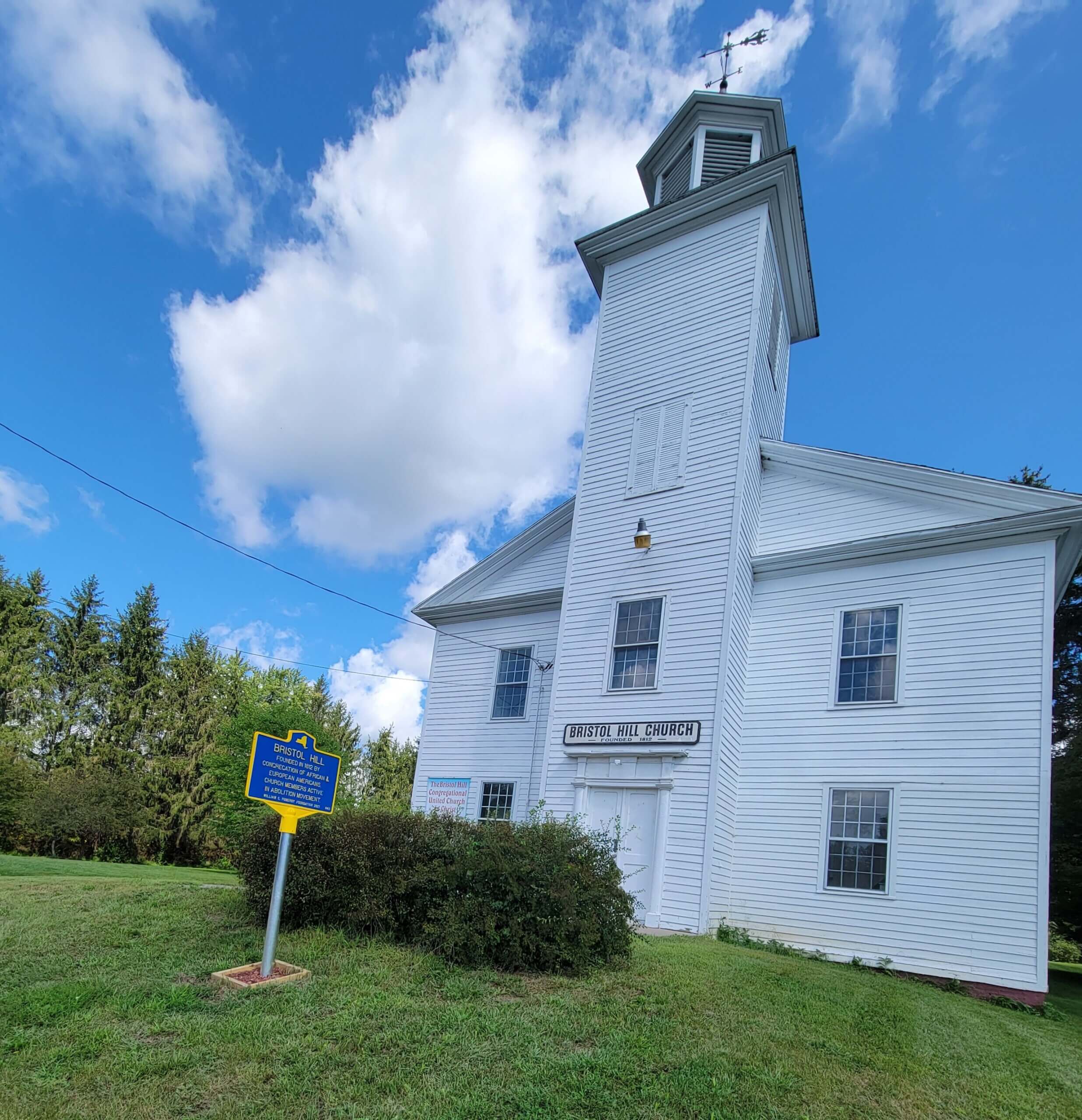 Bristol Hill Church was founded in 1812. The church building, constructed in 1833, was built by a mix of African American and Caucasian parishioners. The church was active in the abolition movement. Members’ signatures appearing on an anti-slavery petition in 1842. Church member Deacon Hirum Gilbert assisted George, a fugitive from slavery, in his escape to Canada, by providing him with a pair of boots.