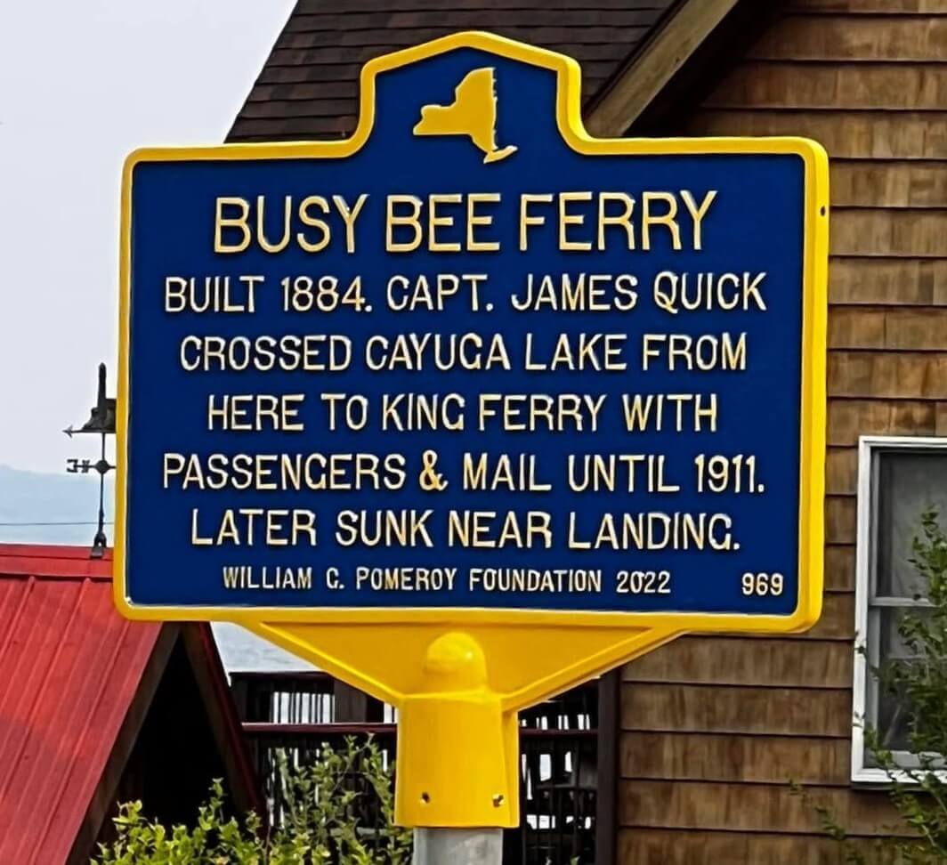 With the advent of the automobile and improved means of transportation around Cayuga Lake, the Busy Bee was retired in 1911. Shortly after this, the boat was sunk near the landing in Kidders. On June 28, 1942, the Ithaca Journal ran an article in which Captain Quick, then 87 years old, recalled his Busy Bee ferry boat. In the article, it was estimated that he crossed Cayuga Lake with his ferry more than 40,000 times.