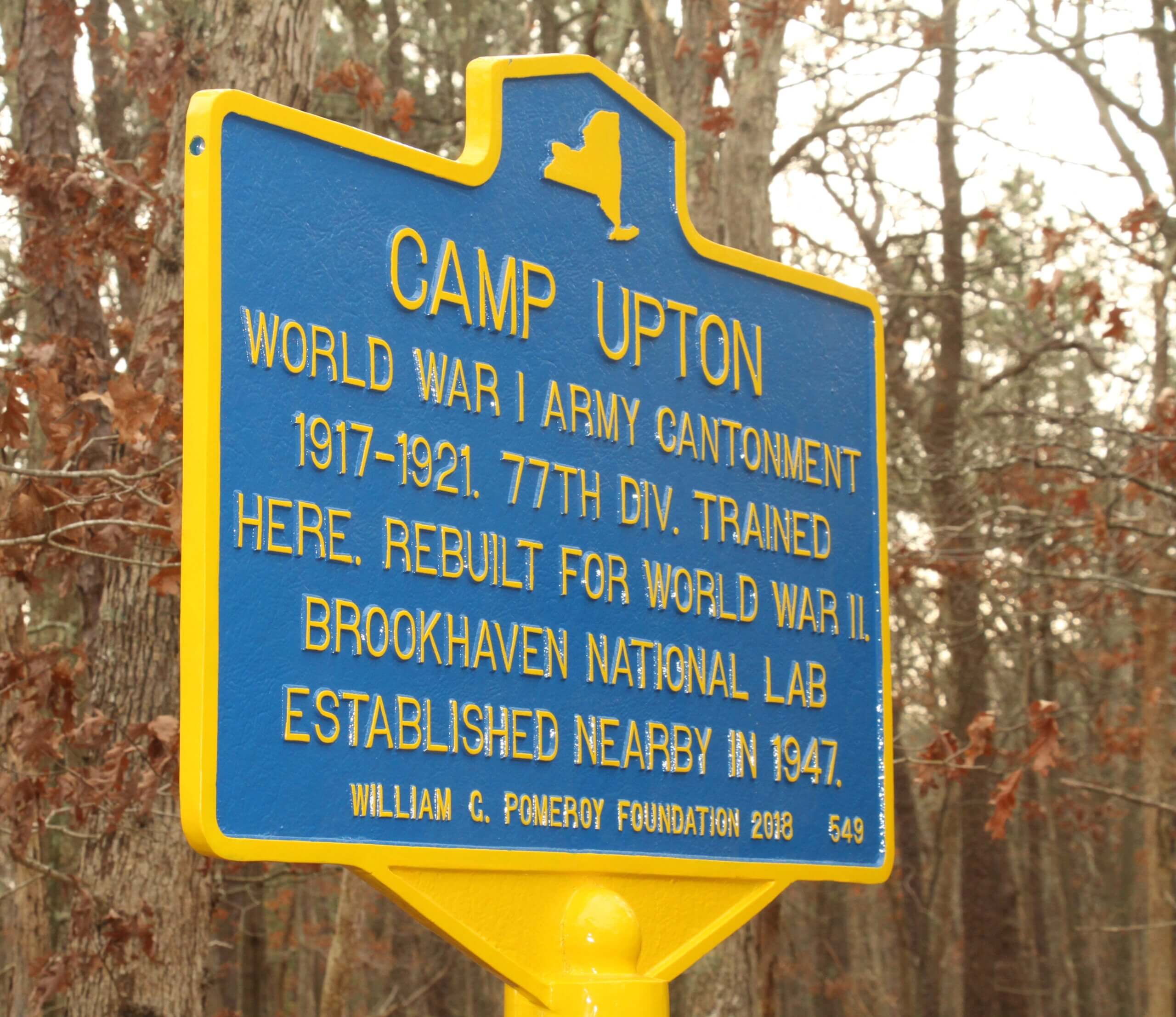 According to the Brookhaven National Laboratory website, when the United States entered World War I, large forces would be needed to fight overseas, but a standing army was non-existent. It was decided that sixteen cantonments would be erected across the country to train the New York area inductees. The proposed army base was to be named Camp Upton, after Civil War figure Major General Emery Upton. The recruits who arrived at Upton came from New York, New Jersey and Connecticut, representing twenty-five or more national backgrounds and all walks of life. In all, some 40,000 men would spend some part of their military service at Upton.