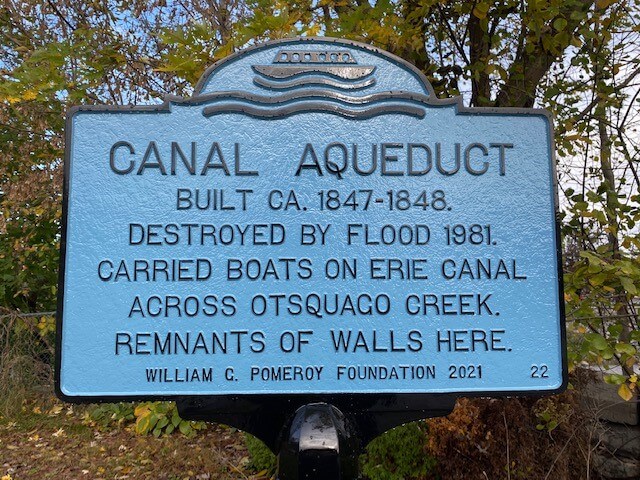 Crossing over the Otsquago Creek, the canal aqueduct in the Village of Fort Plain served such a purpose. The Fort Plain canal aqueduct was built circa 1847-1848, and was 126 feet long by 50 feet wide with five spans.