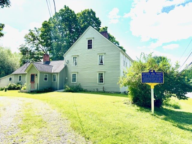 Soon after the battles of Lexington and Concord at the start of the American Revolutionary War, Captain Joel Pratt (1745-1821) raised a company of 49 men from Spencertown in May 1775. At first intending to march toward Boston, Captain Pratt agreed to a request from the Albany Committee of Correspondence to instead march to Ticonderoga. On June 7, 1775 they were directed to stop at Fort George and “proceed no farther than the South End of Lake George.” By October, Captain Pratt and his company were at Fort George and had been absorbed into the 2nd New York Regiment. After his service, Captain Pratt was listed in the Association of Exempts at Claverack, documented in volume three of the published papers of George Clinton, the first governor of New York.