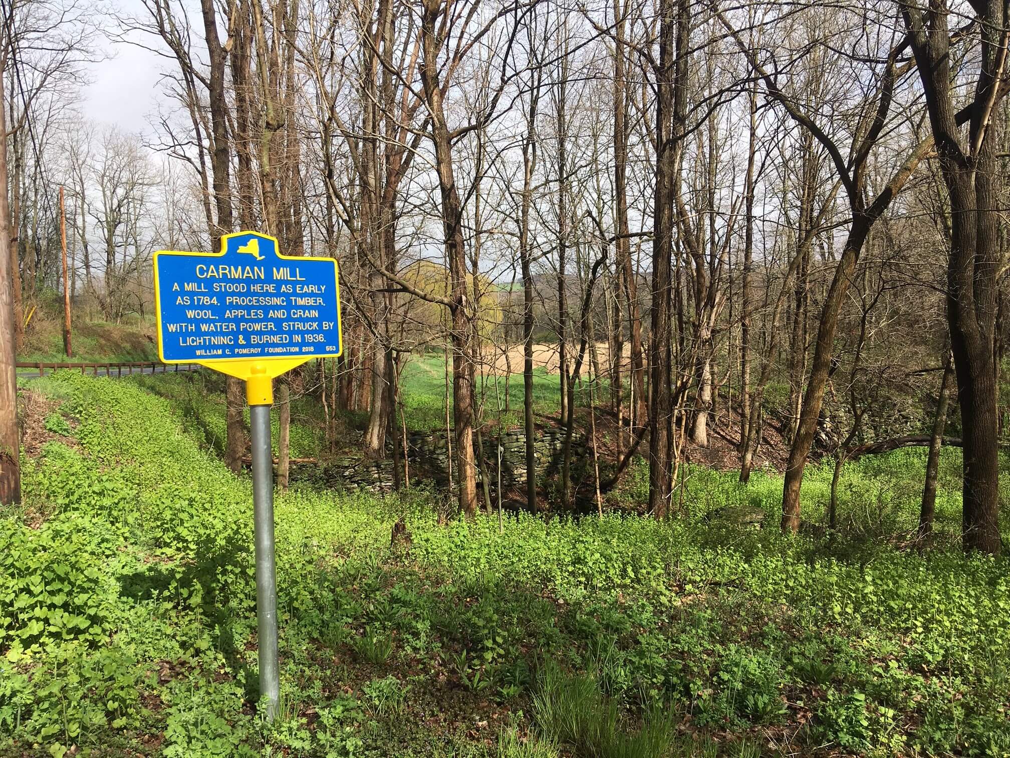 Local industry has proven to be vital to the survival of rural communities. The former Carman Mill, also known as the Enterprise Mill, was no exception. The mill was named after the Carman family and dates back to 1784. It was powered by the neighboring Shekomeko Creek. The mill served the community of Pine Plains for nearly 150 years and processed everything from timber and wool to grain and apples. Sadly in 1936 the building was lost after a lightning strike which resulted in a devastating fire.