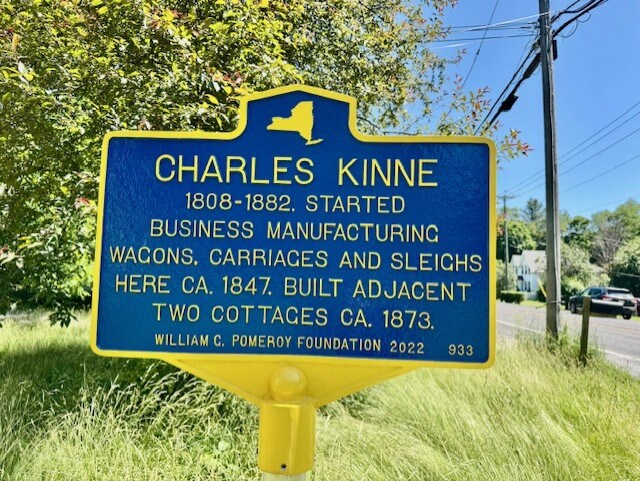 Charles Kinne (1808-1882) started a business manufacturing wagons, carriages, and sleighs in Austerlitz, New York in circa 1847. Kinne purchased the property his business and house were on in 1845 from John Webster. Prior to John Webster, the property was owned by Lewis Bristol and it is thought that Bristol built the house standing on the property.