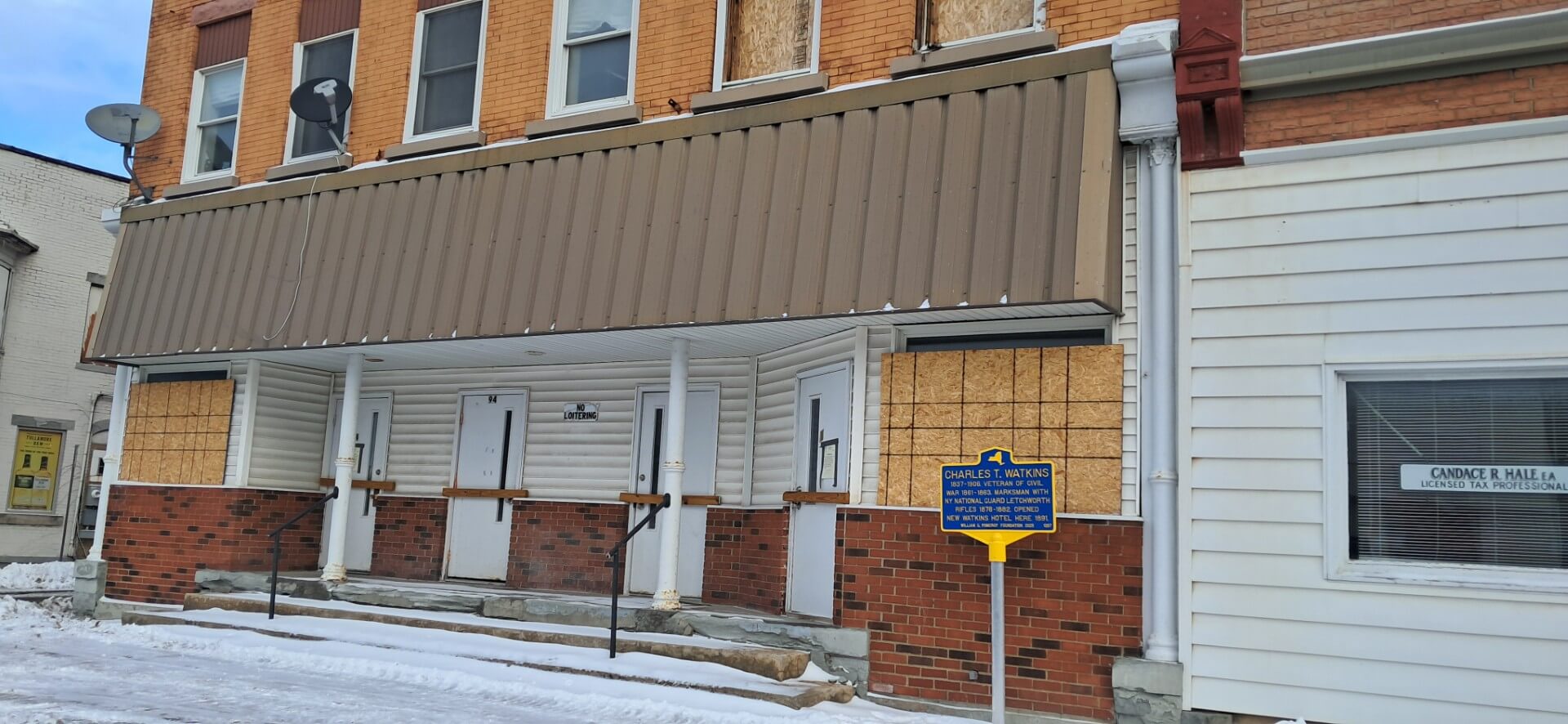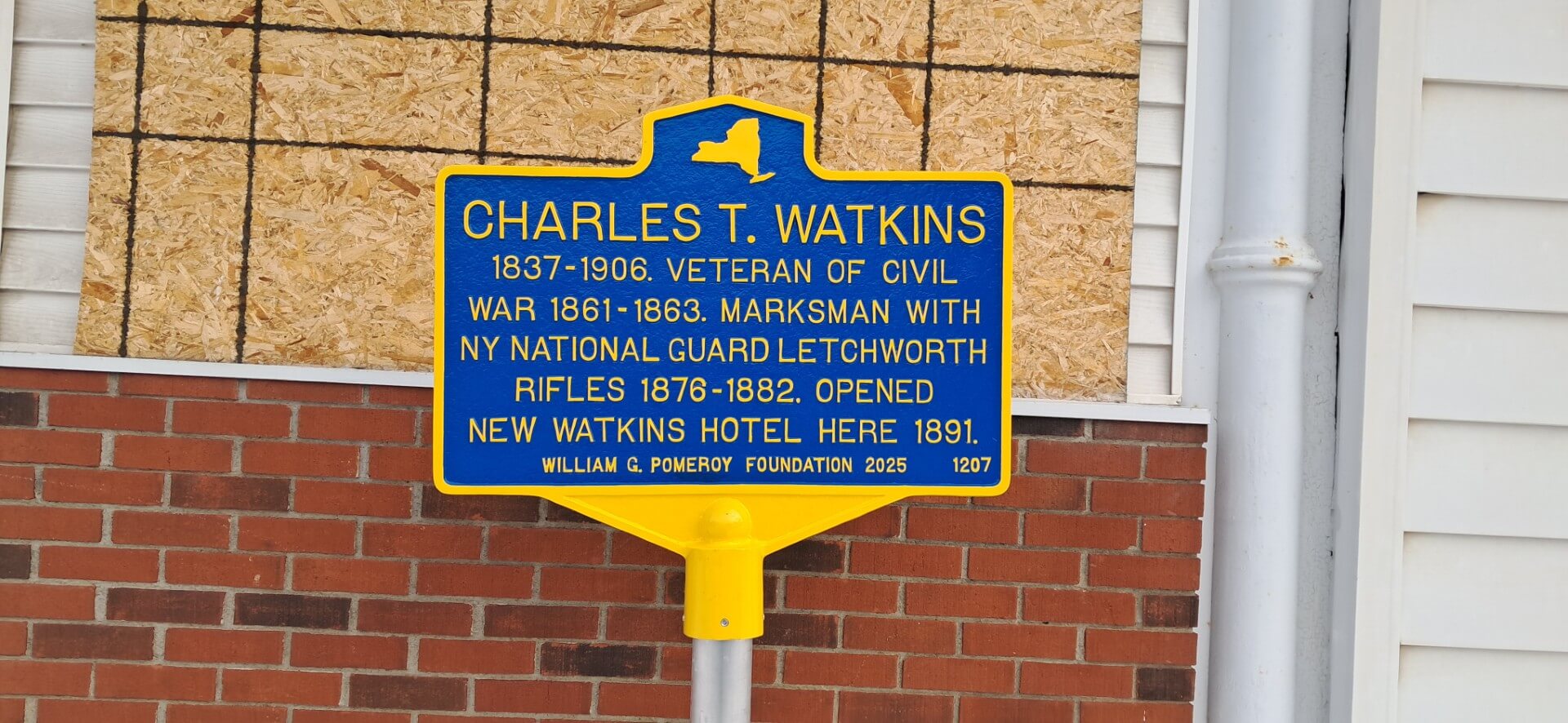 Charles T. Watkins built the New Watkins Hotel in 1891 and operated it until he sold it to the Warsaw Hotel Company in 1903 and retired. The Wyoming County Times described the hotel upon its opening as “beautifully finished in Georgia pine, equipped with all modern appliances for convenience and comfort, and will prove as pleasant an hotel as can be found in Western New York.” (June 11, 1891).