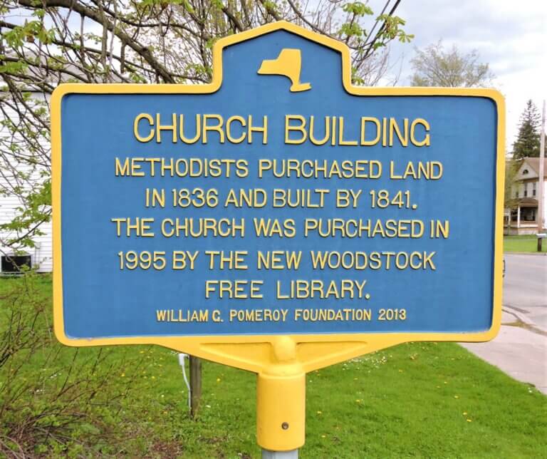 Eventually the First Methodist Episcopal Church changed their name to the Methodist Society of New Woodstock, then later to the New Woodstock United Methodist Church. In 1979, the Methodist Church and the First Cazenovia Baptist Church joined together to form the Federated Church of New Woodstock. Not needing two buildings, trustees sold the Methodist Church building to the New Woodstock Free Library (Deed, 16 Aug 1995).