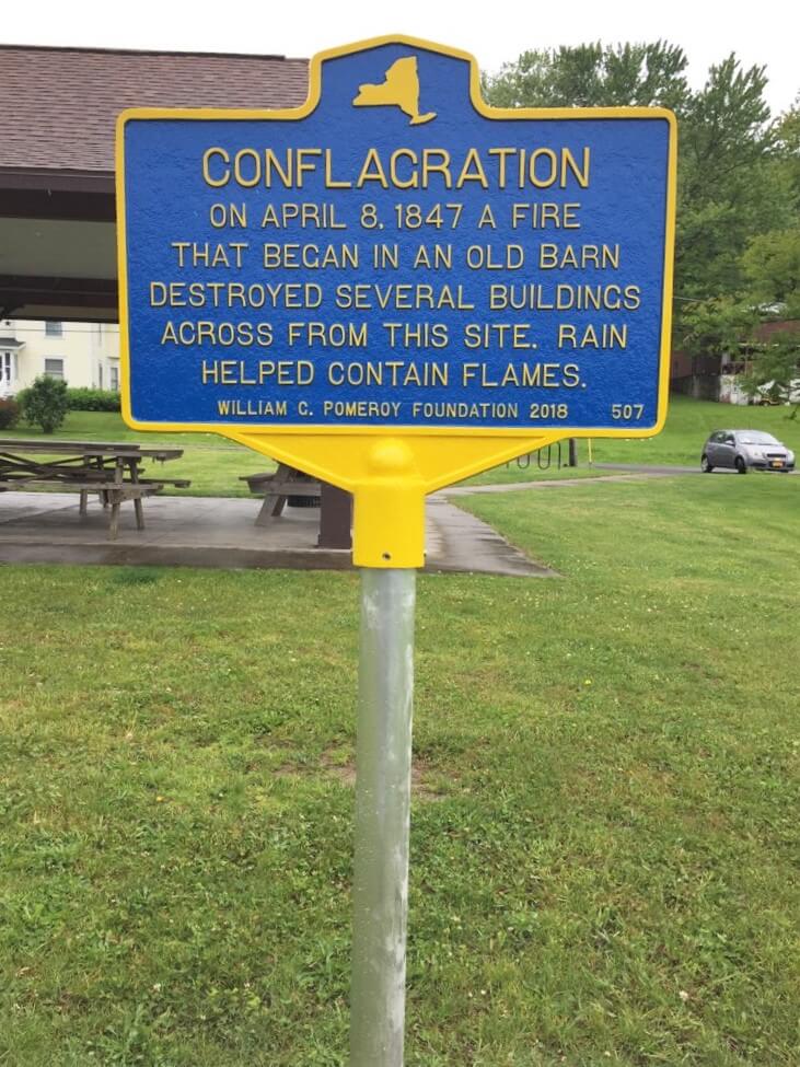 In the evening hours of April 8, 1847, a massive inferno erupted from a barn located in the commercial district of Clyde, New York. The alarm was raised and the community quickly moved to action, working together to put the fire out. A combination of high winds and the close proximity of neighboring buildings allowed the flames to spread, destroying everything in its path. Fortunately with the help of a little rain, the blaze was subdued. Nearly everything was lost between the corner of Glasgow and Columbia Streets. While the damage done to the buildings was severe and costly, no one was killed or seriously injured.