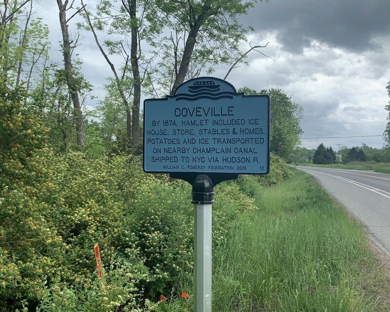The hamlet of Coveville developed on the Champlain Canal in the town of Saratoga in eastern Saratoga County. Thanks to the canal, by 1874, an ice house, store, stables, and homes had been established in Coveville. Local merchants transported goods such as potatoes and ice on the canal for shipment to New York City via the Hudson Railroad. As of 2022, some remains of the Champlain Canal are visible along U.S. Route 4 in Saratoga.