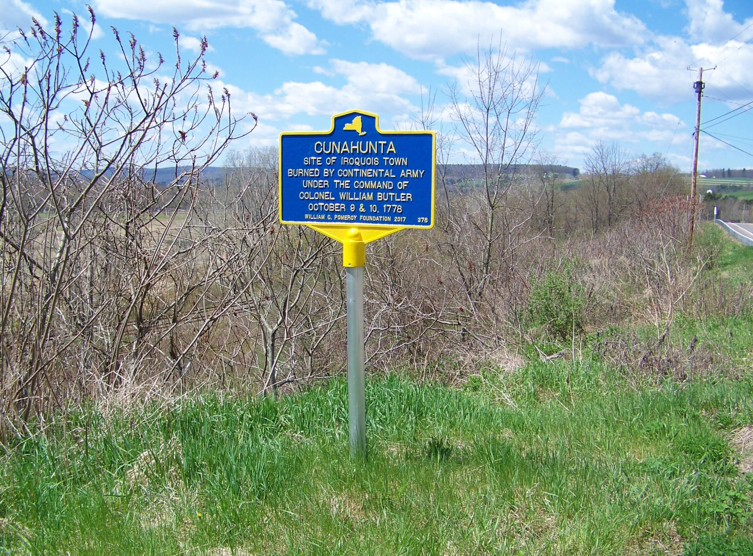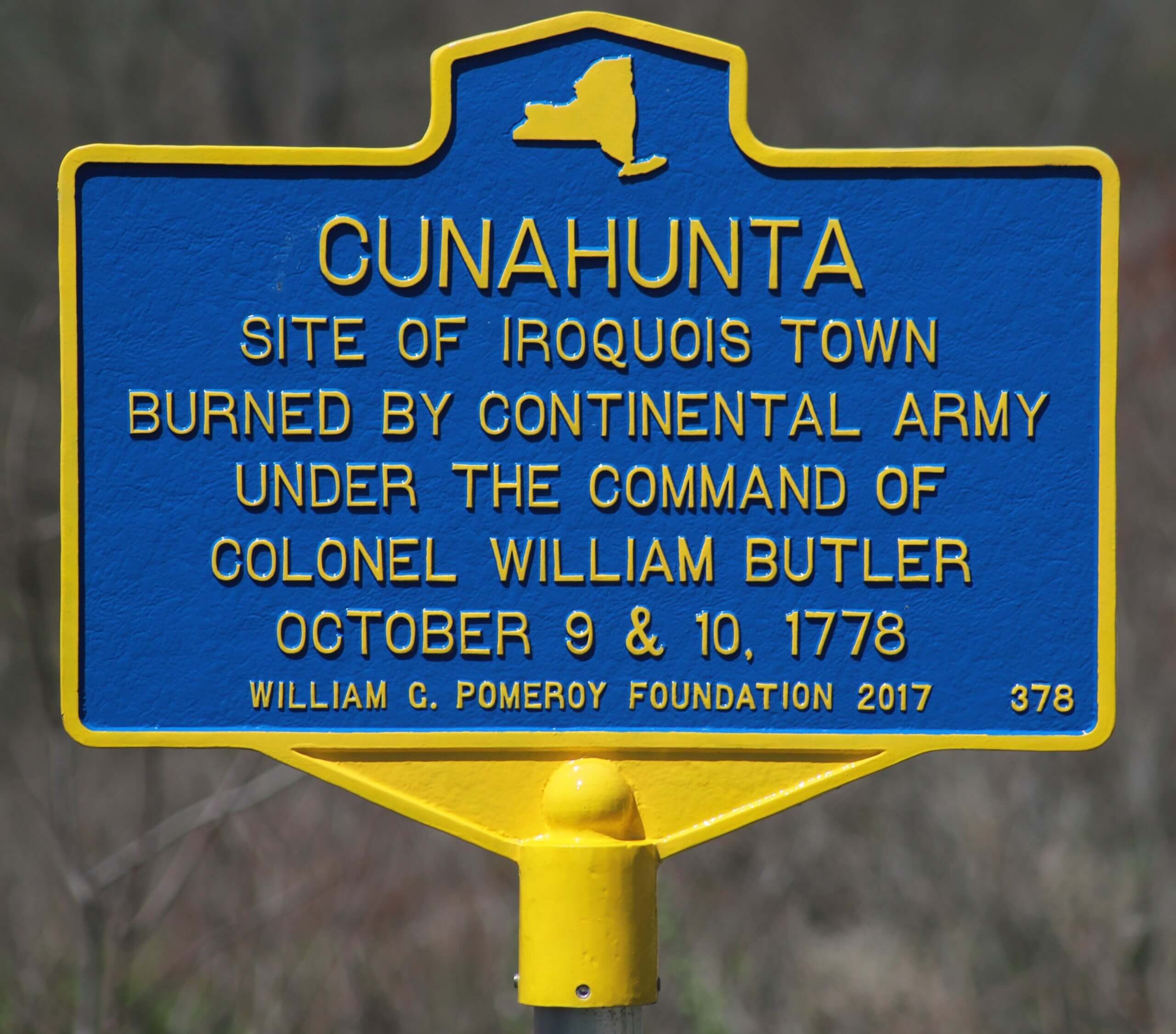 This is the site of an Iroquois, or Haudenosaunee, town which was burned by Continental Army troops commanded by Colonel William Butler. This expedition was a prelude to what is better known as the Sullivan-Clinton Campaign of 1779.