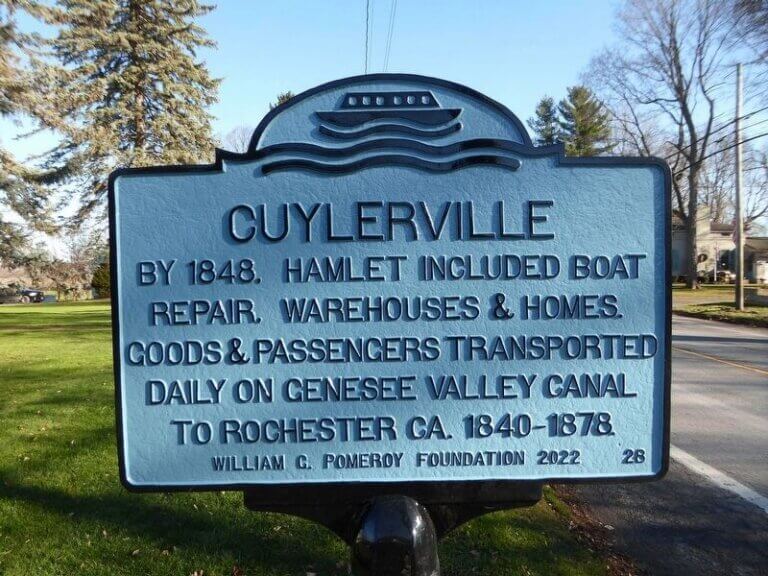 The Genesee Valley Canal opened between Rochester and Mount Morris, NY in September 1840, providing a more efficient alternative to the Genesee River and served as an important link between major transportation routes for moving goods and people. Along this route, the hamlet of Cuylerville developed into a canal community where local products such as timber, apples, and wheat were stored in warehouses and shipped to larger markets. By 1848, freight packet boats, the Caroline and the Frances, operated daily lines on the canal, traveling between Mount Morris and Rochester with stops at Cuylerville. One notable guest who is believed to have stayed in the area is William H. Seward, who later served as Secretary of State in both the Lincoln and Johnson administrations. His visit to Cuylerville and the National Hotel there is reported to have occurred in 1844, shortly after his second term as Governor of New York State.
