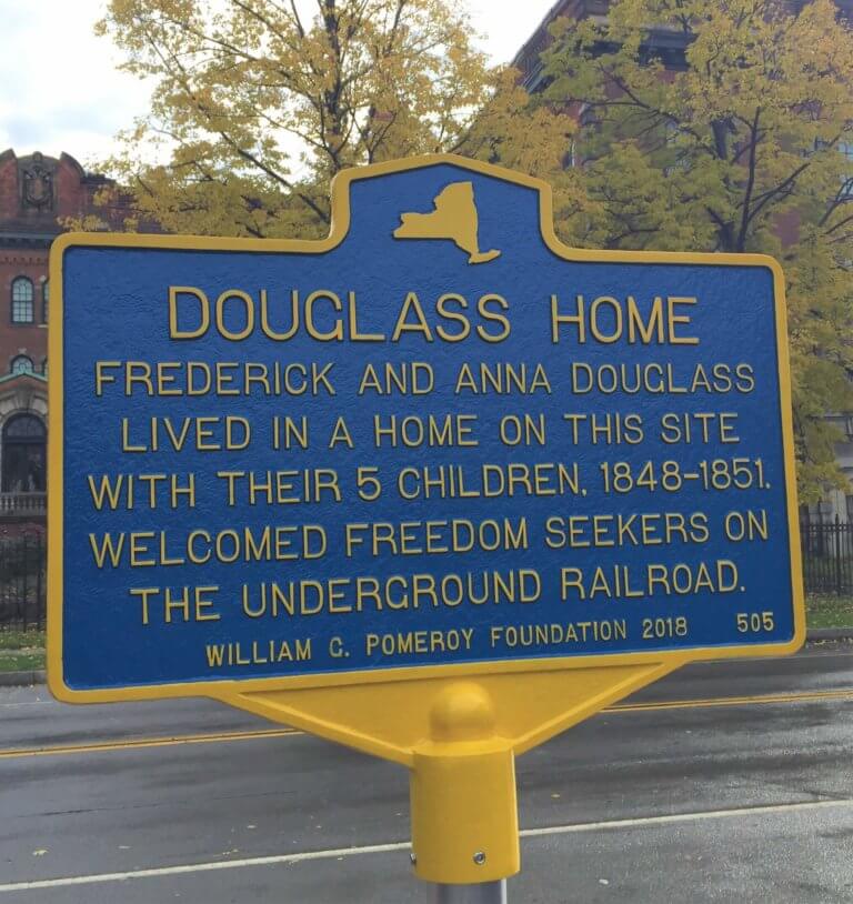 It was here on Alexander Street that the residence of former slave, writer, and abolitionist Frederick Douglass once stood. From 1848-1851 Douglass lived there with his wife Anna and their five children. The Douglass home was additionally a stop on the Underground Railroad that provided safety for enslaved people seeking freedom.