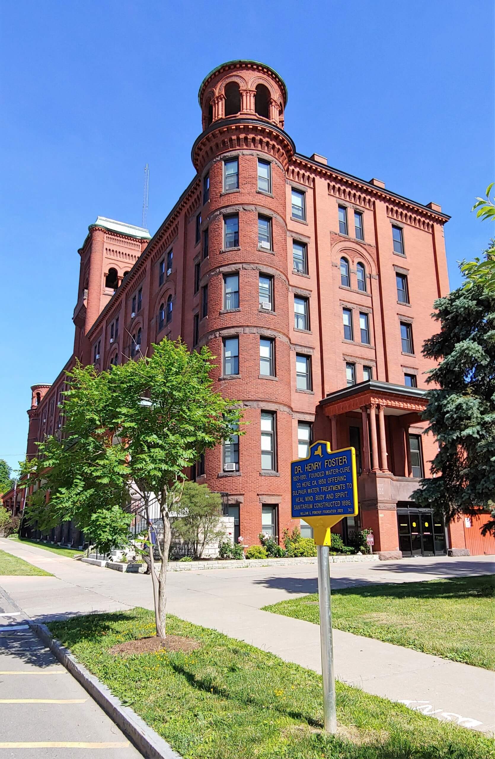 As of 2020, the marker commemorating Dr. Henry Foster stands outside his former Sanitarium, which is now operated as a senior housing complex, renamed the Spa Apartments.