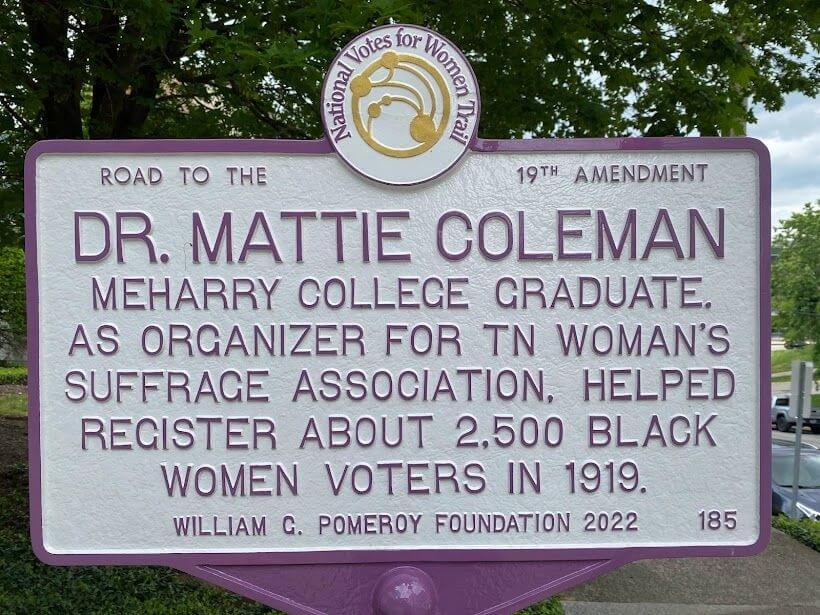 Prior to the passage of the Nineteenth Amendment, Meharry Medical College graduate, Dr. Mattie E. Coleman fought for women’s right to vote as an organizer for the Tennessee Woman’s Suffrage Association, working to organize Black women in the state for the suffrage cause. In 1919, she helped to register about 2,500 Black women voters in the city of Nashville. According to her biography published in Notable Black American Women, Book II (1996), Dr. Coleman is believed to have been one of the first Black women doctors in the state of Tennessee and worked for women’s rights from within the Christian Methodist Episcopal Church.