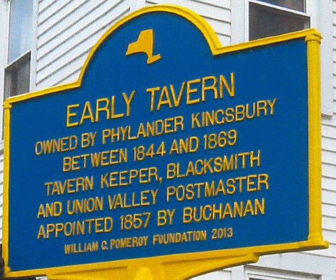 The hamlet of Union Valley, in the Town of DeRuyter, is located at the intersection of two main roads. This intersection was a once bustling community center, and one of Union Valley’s prominent businesses located here was the tavern of Phylander Kingsbury.