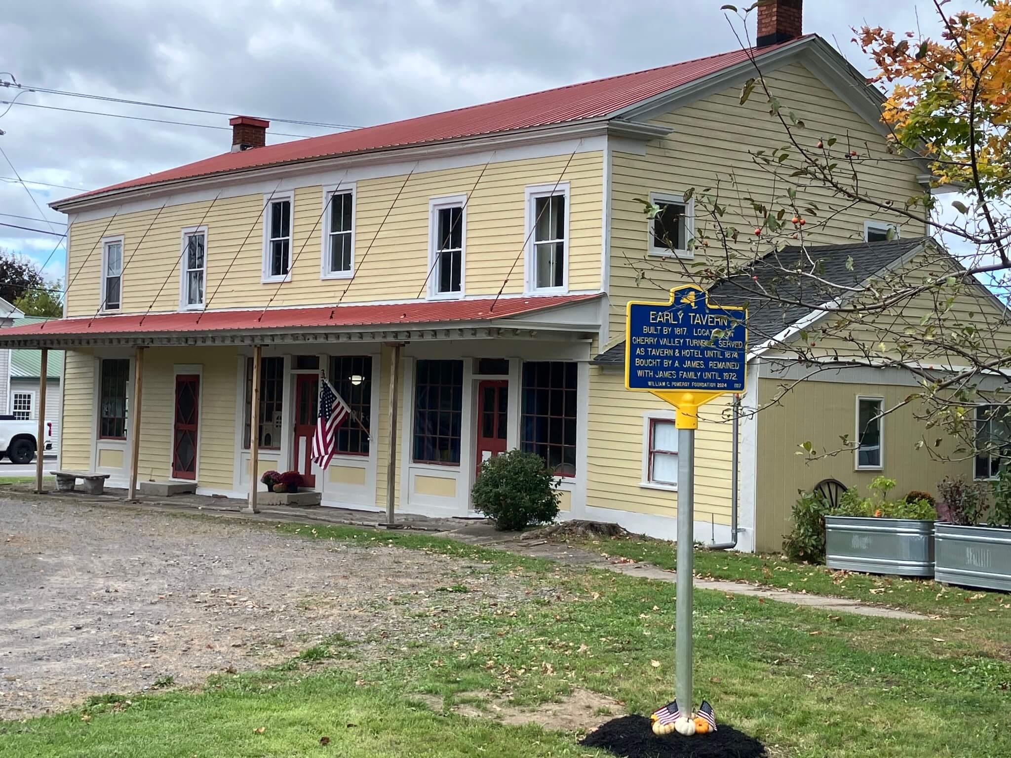 Built by 1817, though sources indicate that the structure may have been constructed as early as 1804, the building served as an early hotel and tavern along the Great Western Turnpike, which was more commonly known as the Cherry Valley Turnpike.
