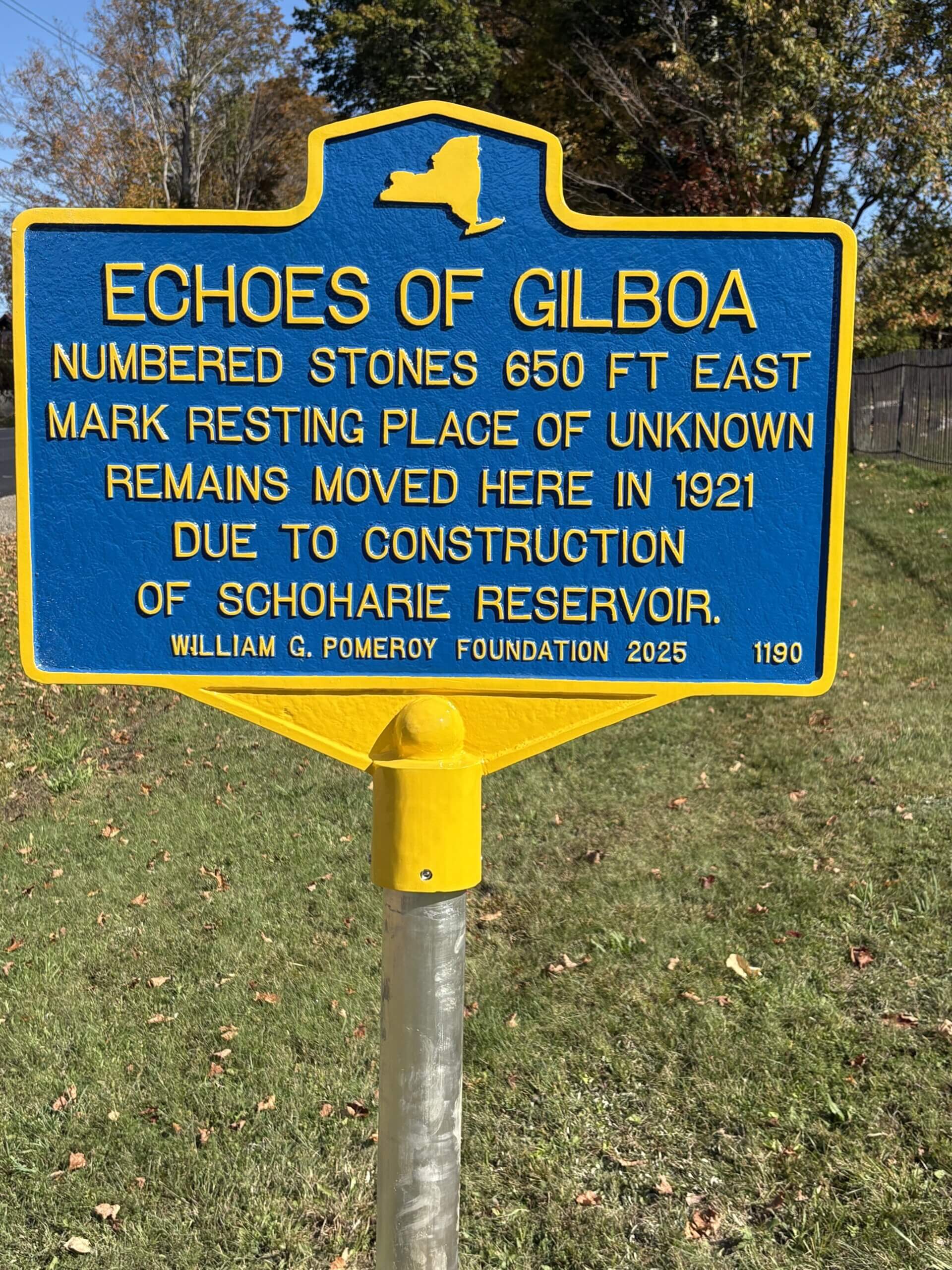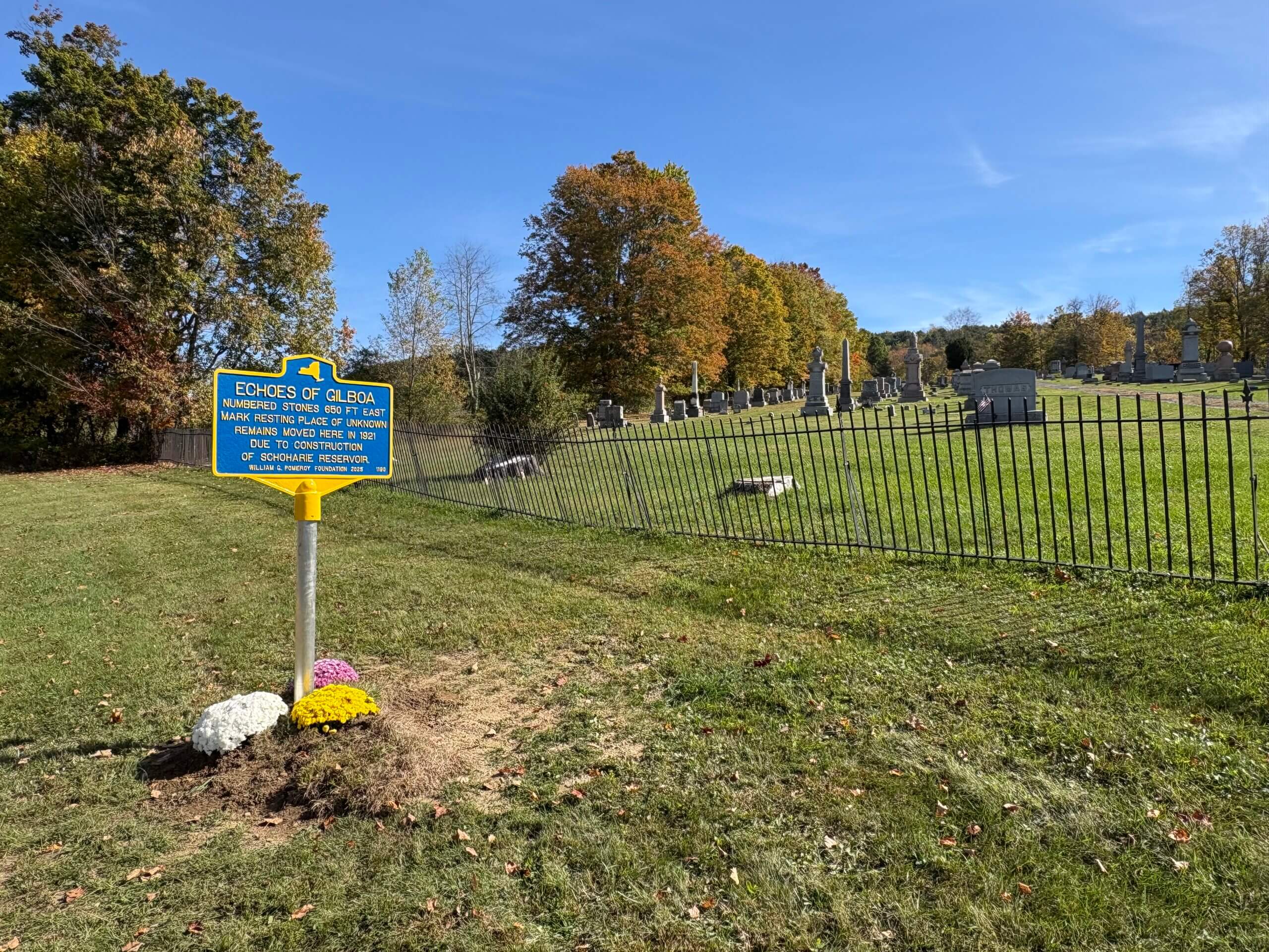 The following cemeteries were removed to make way for the reservoir: Hoagland Cemetery, Old Gilboa Cemetery, Gilboa Cemetery Association, Emory A. Lewis Cemetery, Adelia McCauley Cemetery, Charles Lewis Farm Cemetery, cemetery on Starr D. Mase farm. (Gilboa Rural Cemetery, Schoharie County NYGenWeb Site. Accessed 26 March 2025)