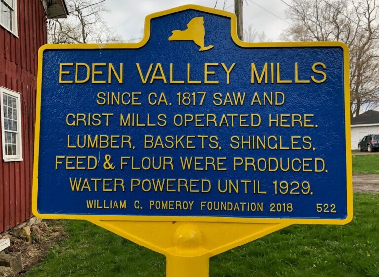 The tiny hamlet of Eden Valley was at one time a bustling industrial community. It was the home of the Eden Valley Mills which consisted of a lumber and grist mill, each powered by water. These mills produced a variety different goods which included lumber, baskets, shingles, feed, and flour.
