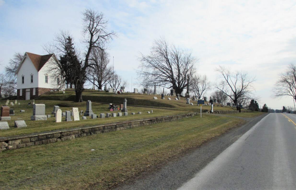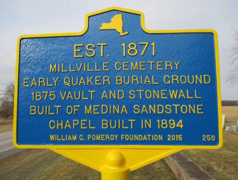 Millville Cemetery, established in 1871, began as a Quaker burial ground. The vault and stone wall were constructed in 1875, from locally sourced Medina sandstone. The chapel was built later on in 1894.