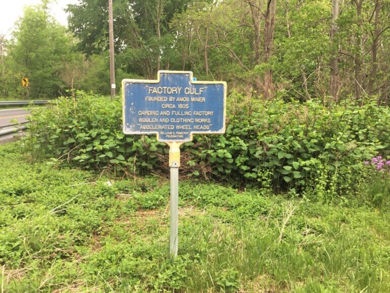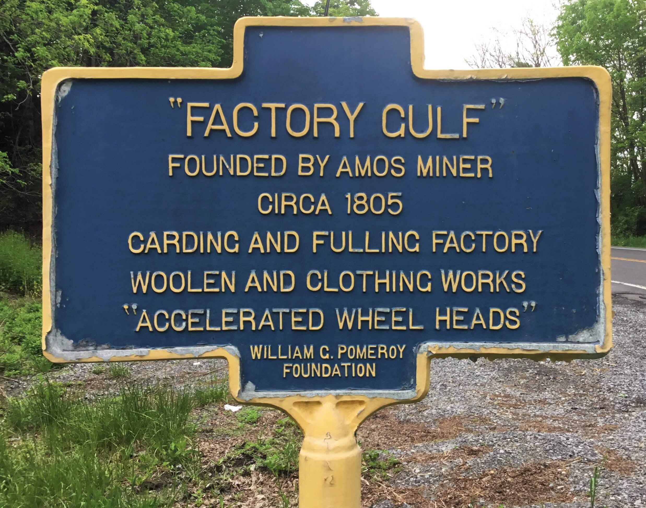 Amos Miner was born in Connecticut in 1776 and learned the wheelwright trade. While clearing land, he was accidentally injured. While confined to his bed he developed the idea of improving the old-fashioned spinning-wheel, then in popular use for making woolen yarn. The result was Miner’s accelerating wheel-head, patented in 1803. In 1805, he purchased 27 acres of land on lot 68, Marcellus (now Spafford) but soon after established himself in Factory Gulf. Here, Miner built a factory, fitting it with machinery of his own invention, and manufactured wheel heads, flails, fork handles, and other wooden utensils for the household and farm.