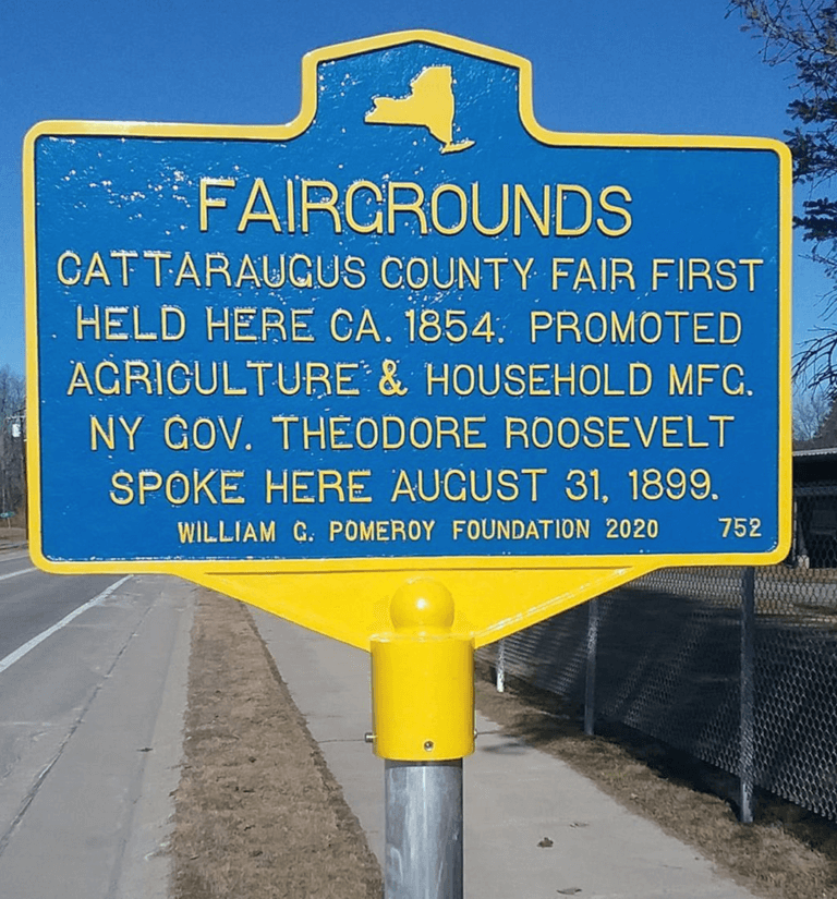 Arguably, one of the important community events across the United States is the County Fair. This especially true for Cattaraugus County. Beginning around 1843 in Fredonia, New York, the Cattaraugus County Fair was a tradition with a 175 year+ legacy. Created by the Cattaraugus County Agricultural Society, Cattaraugus County Fair showcased community accomplishments in agriculture and household manufacturing. The County Fair was held in a variety of communities throughout Cattaraugus County. 1854 marked the first year it was held in Little Valley. While it moved on the following year, the Village of Little Valley eventually became the permanent location of the Cattaraugus County Fair. On August 31, 1899 New York Governor Theodore Roosevelt stopped at Little Valley and spoke at the Cattaraugus County Fairgrounds. A September 1, 1899 article in The Buffalo Times details the visit: