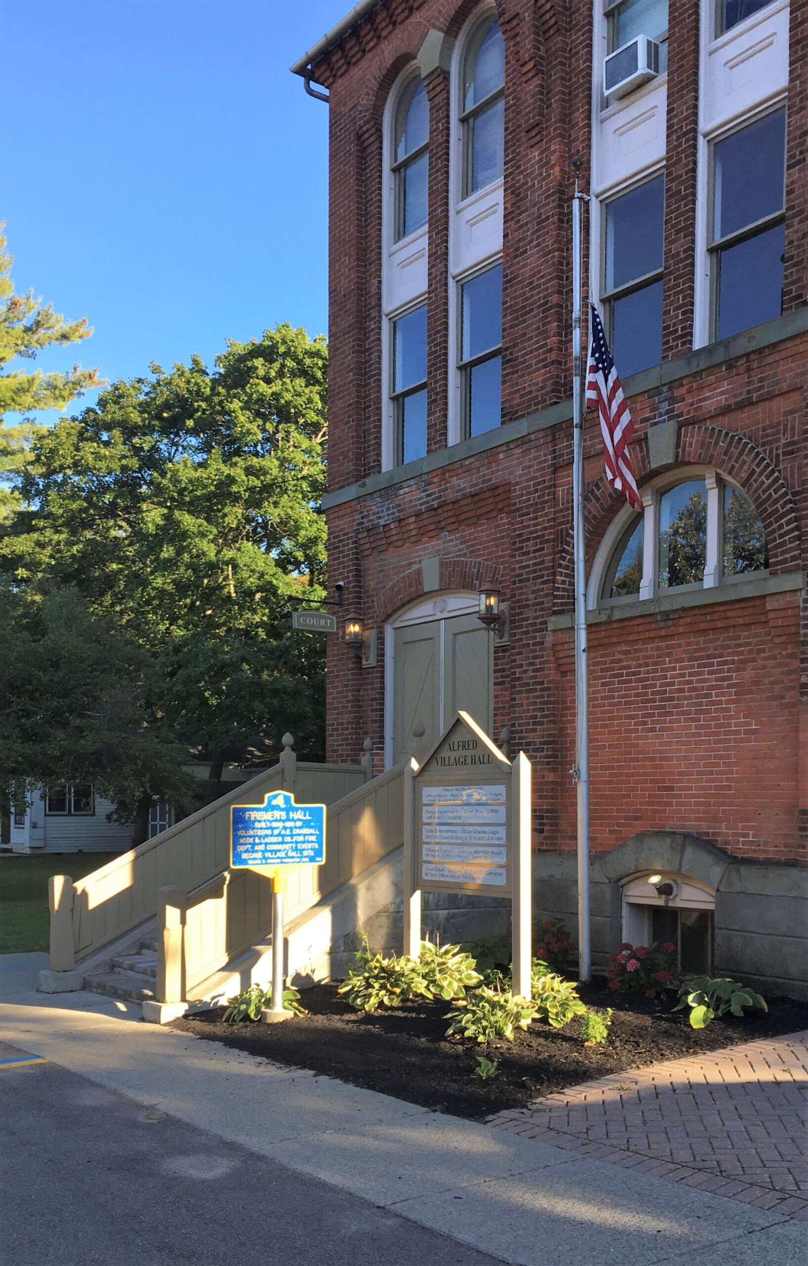 Constructed between 1890-1891 by volunteers of the A.E. Crandall Hook & Ladder Company, the resulting building was a handsome structure. The Firemen’s Hall was not only utilized by the volunteer fire department but was shared with the community for their events too. As of 2020, the building was renovated and converted to the Alfred Village Hall and Offices.