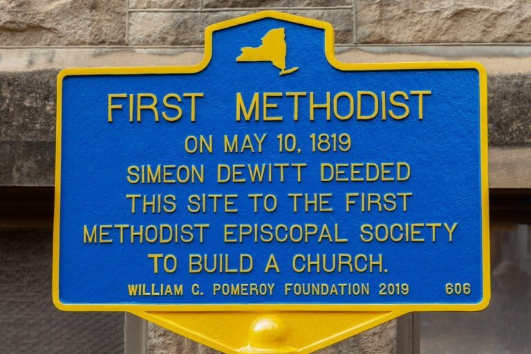 On May 11, 1819, Ithaca resident Simeon Dewitt donated a piece of his property to the First Methodist-Episcopal Society for the purposes of building a church. As of 2019, this site is the home of St. Paul’s Methodist Episcopal Church.