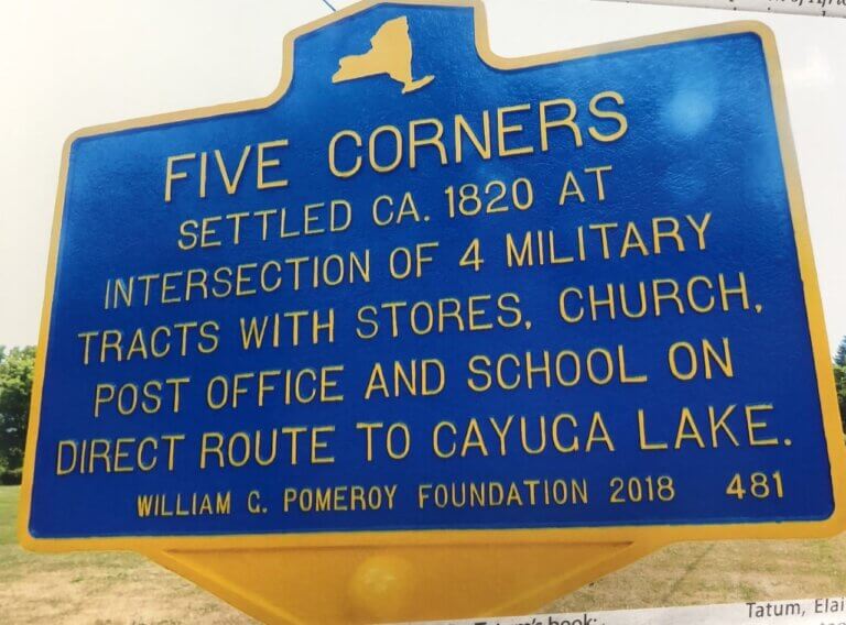 As Five Corners developed, so did the local economy. By 1875, per the F.W. Beers, County Atlas of Cayuga County, New York map, Five Corners had a Presbyterian Church, several cemeteries, a school, post office and a store. It also was home to, “a hardware store, two blacksmith shops, a shoe shop, a paint shop and about seventy inhabitants” by the 1870s (History of Cayuga County, New York, Elliot Storkes, 1879).