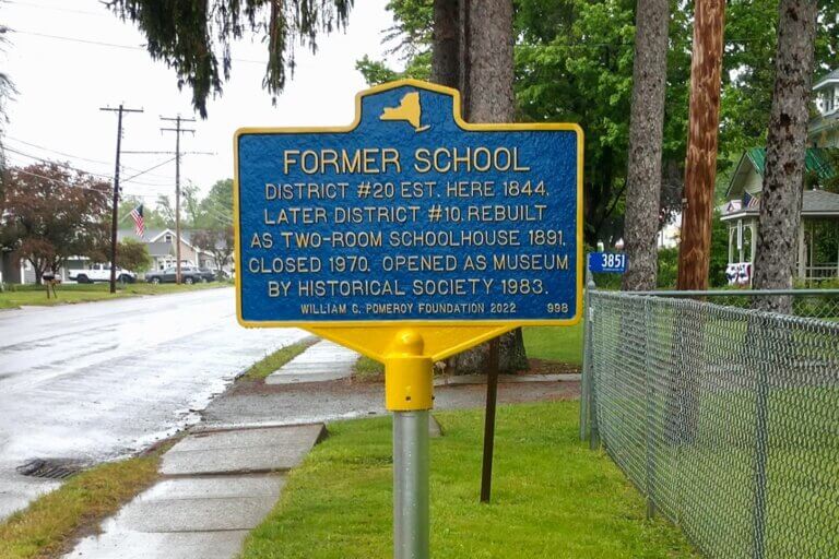 The present two-room schoolhouse was built on the original site of District No. 20 in 1891 by local architect William Bettendorf. By 1902, it was renamed District No. 10. Despite staunch resistance from the community, it consolidated with the Holland Central School District and later closed in 1970. In 1974, the district sold the schoolhouse to the Town of Sheldon. Shortly after, the Sheldon Historical Society began working with the town to restore the schoolhouse, and in August 1983 it was dedicated as the Schoolhouse Museum. It also houses a community library furnished by the books of Dorotha E. Kirsch, the former school’s last teacher.