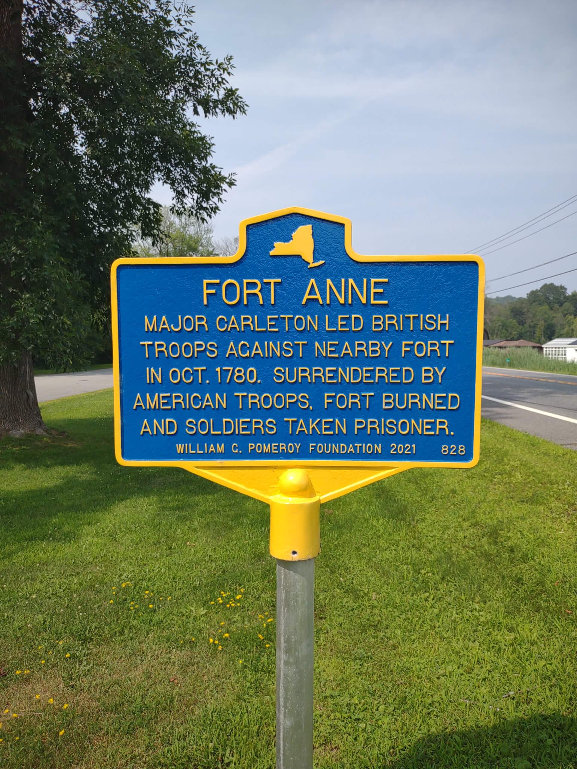 Reduced to ash in the skirmish, Fort Anne (or Ann) once stood near this site in the present-day Town of Fort Ann, NY. While the fort is believed to have been named in honor of Queen Anne, local tradition asserts that the “e” was later removed from the town name as either a sign of patriotism, a simple spelling error, or in reference to an early resident.