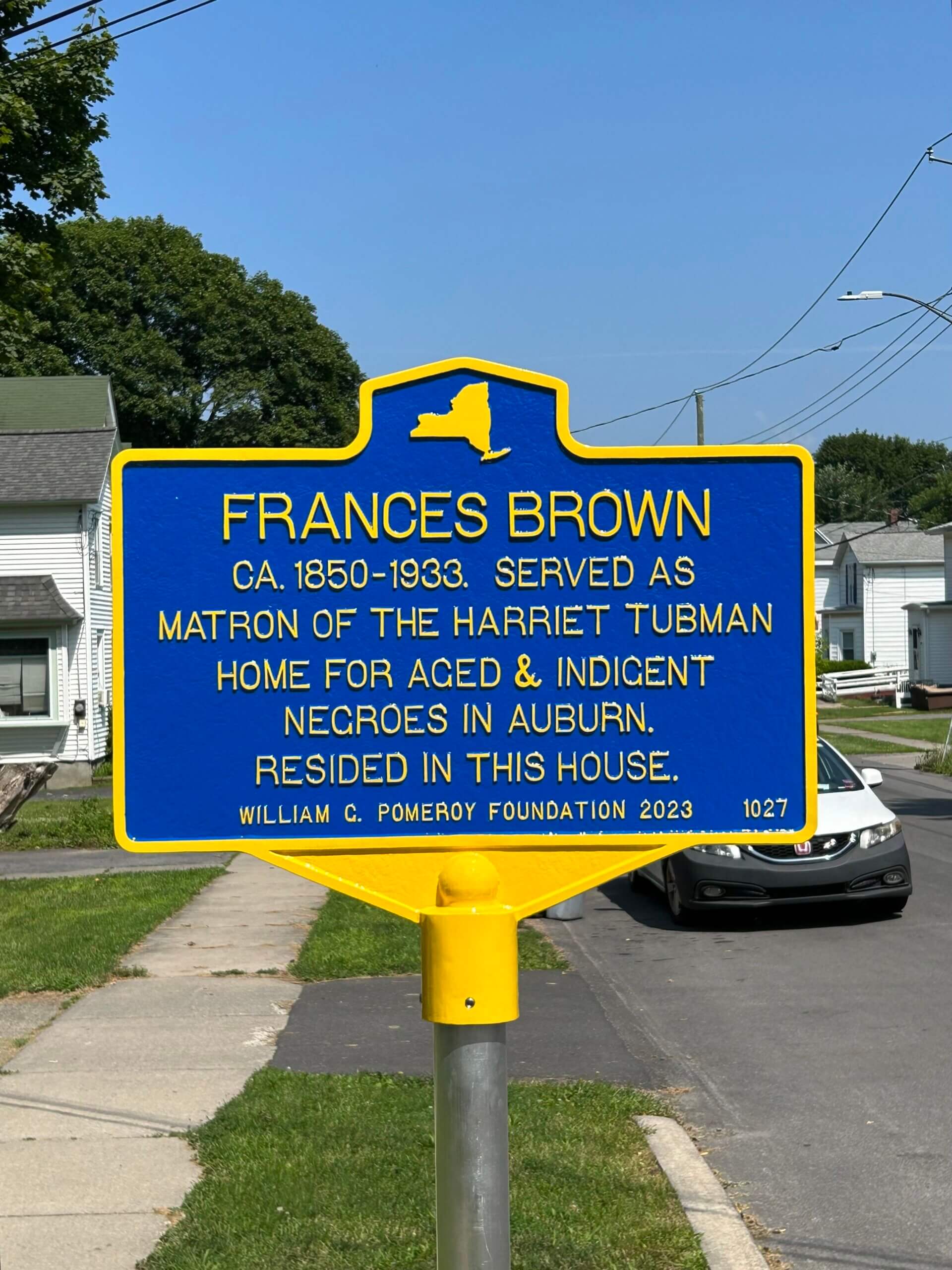 In a time when resources allocated to the elderly and formerly enslaved were scant—if any—the Harriet Tubman Home for the Aged was an important development in eldercare, which Frances Brown played a crucial role in. As Frances was during her life, her former residence, too, remains closely linked to Harriet Tubman, sitting beside the former AME Zion Church which is—as of 2023—being rehabilitated by the National Park Service (NPS) with the plans of using the building to house both staff offices and exhibitions related to the legacy of Harriet Tubman.