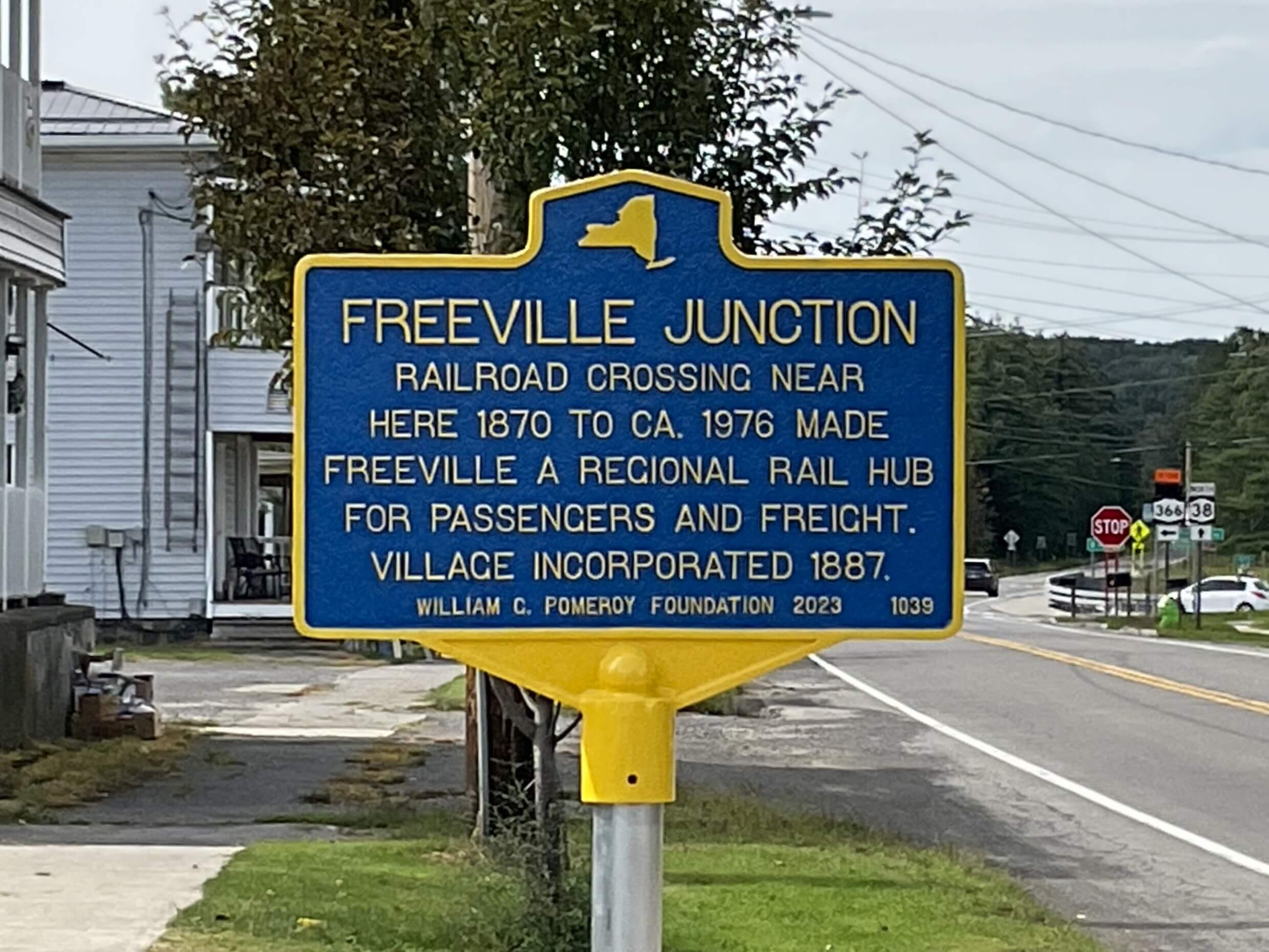From 1870 to around 1976, Freeville, New York, served as a regional rail hub for passengers and freight thanks to the crossing of two rail lines through the village. In 1870, the Ithaca & Cortland Railroad became operational. At Freeville, this new line crossed an existing Southern Central line. In 1890, both lines were acquired by the Lehigh Valley Railroad. For decades, at least four trains would be at the Freeville junction twice a day, each train looking to exchange passengers, baggage, or freight, and then get cleared for departure. The traffic from the railroad junction aided the growth and development of Freeville and in 1887, voters of the village made the decision to incorporate. Freight service on the two lines continued into the 1970s. Around 1976, both rail lines closed, and the junction ceased to exist.