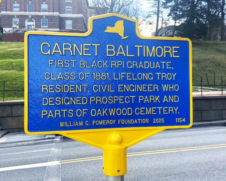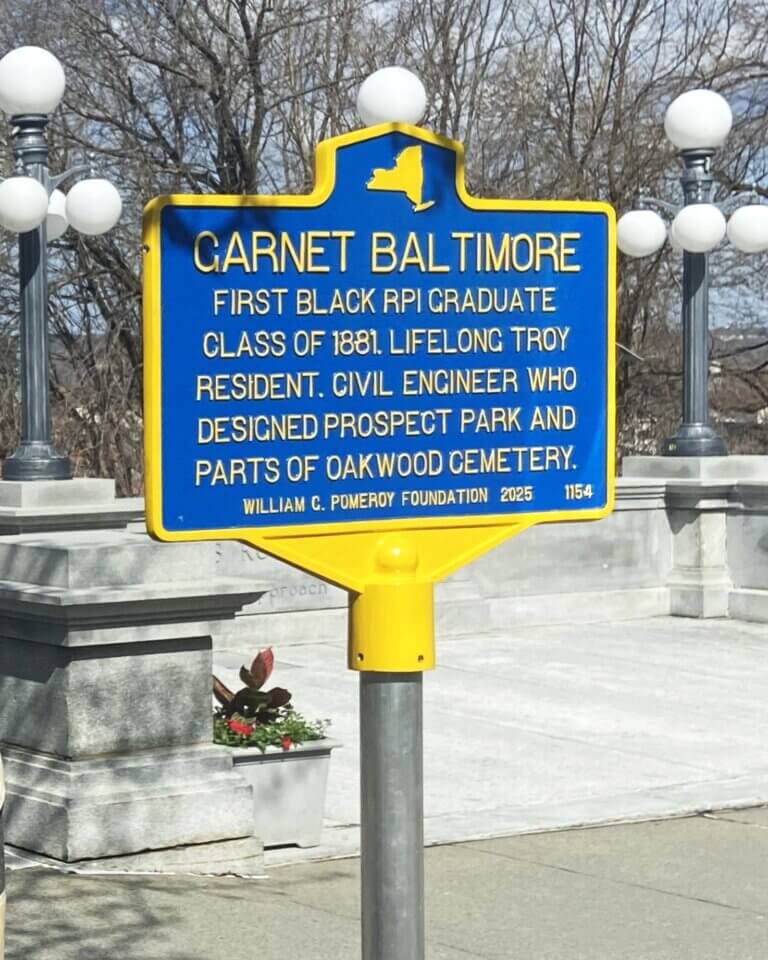 Garnet Douglass Baltimore (1859-1946) was a civil engineer and landscape authority. He was the first African American graduate of Rensselaer Polytechnic Institute, earning his degree in 1881. Notable projects he worked on included the planning of Prospect Park, Troy, after the land was acquired by the city in 1903, the construction of the Albany and Greenbush bridge between Rensselaer and Albany, the Shinnecock and Peconic canal on Long Island, and the mud lock on the Oswego Canal. In 2024, the lock was still visible along the Seneca River from Onondaga Lake Parkway. (Troy Times Record, 16 April 1943)