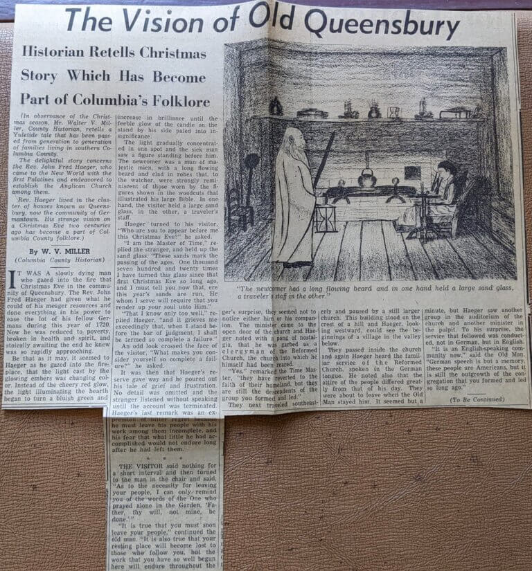 On a fateful Christmas Eve in 1720, Rev. Johann Frederick Haeger, who was stationed in Germantown, New York, experienced an otherworldly encounter that would revive his dismal spirits. Serving under the Society for the Propagation of the Gospel in Foreign Parts, Rev. Haeger had grown depressed. His efforts to infuse Church of England practices into the 1710 Palatines met with staunch resistance, and his failure in accomplishing many of the Society’s goals weighed heavily on him.