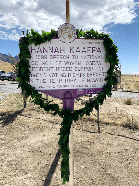 Suffragist Hannah Kaaepa (1873-1918) was born in Hawaii and immigrated to Utah, settling with other members of the Church of Jesus Christ of Latter-day Saints in Iosepa, Tooele County, Utah, a community of Hawaiian and Polynesian Mormons that was established in 1889. In February 1899, Kaaepa was part of the Utah delegation made up of prominent Utah suffragists that traveled to Washington, D.C. to participate in the third Triennial Congress of the National Council of Women. Kaaepa addressed the National Council, urging support of women’s voting rights efforts in the Territory of Hawai‘i.