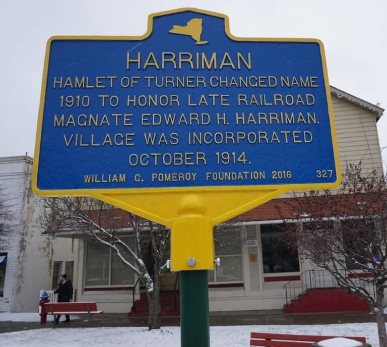 The hamlet of Turner was renamed Harriman for railroad magnate Edward H. Harriman in 1910 as his estate was located adjacent to the village. Following his death, the Harriman family gave 10,000 acres of land to New York State for park lands.