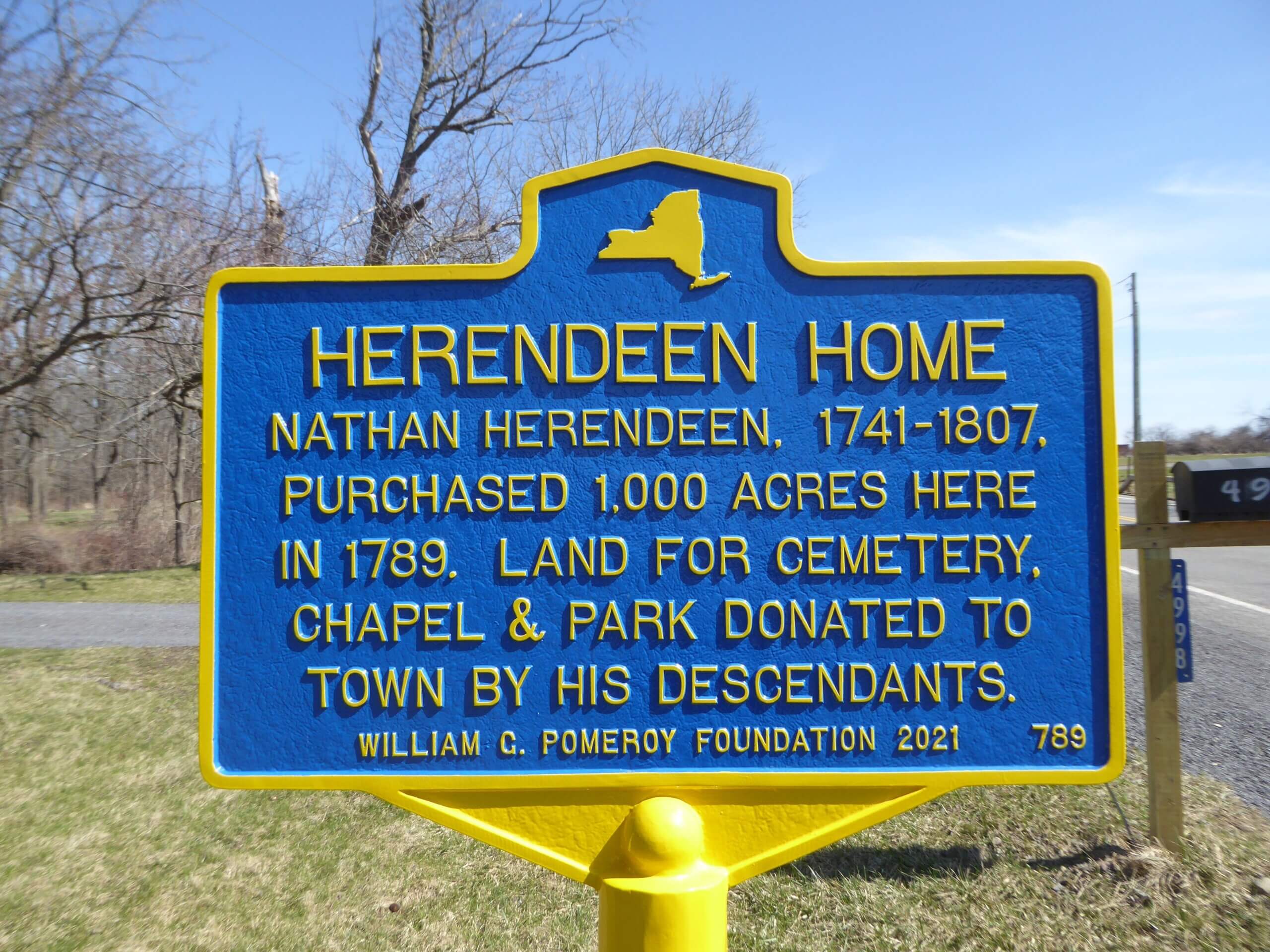 The Herendeen Home, in the community of Shortsville, is the former home of early resident Nathan Herendeen (1741-1807). Arriving around 1790, Nathan Herendeen purchased 1,000 acres of land here in 1789 for only £100. Following his death in 1807, Herendeen bequeathed to his son, Welcome Herendeen, a significant portion of his estate, which consisted of his home, farm, and hundreds of acres of land, which remained in the family for several years.