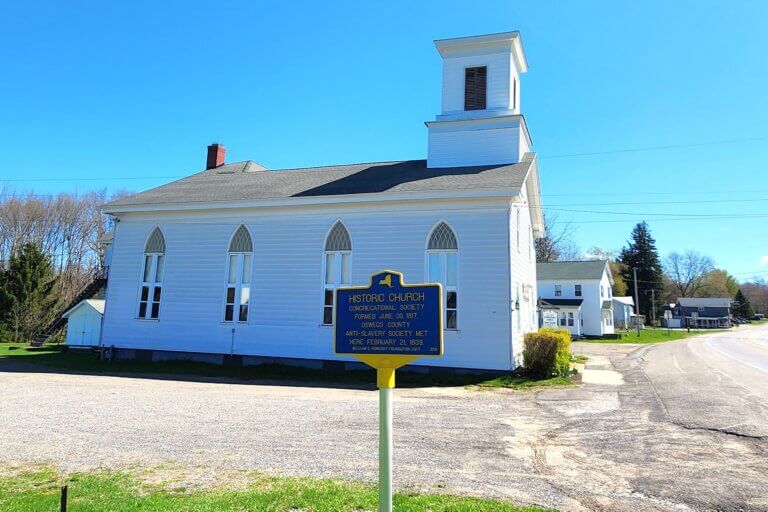 This historic church first formed in 1817 as a Presbyterian Church. In 1839, the Oswego County Anti-Slavery Society met here. It was moved from its original site and has been at its current location for more than 140 years.