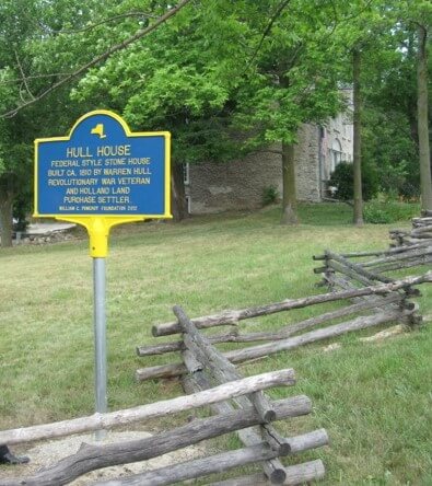 The Hull House is a Federal Style stone house built around 1810. It was constructed by Warren Hull, a veteran of the American Revolution. The house was rescued in 1993 by the Landmark Society of the Niagara Frontier. The house and grounds are now open to the public, offering tours, history camp for kids, hands-on archaeology experiences, reenactor encampments and heritage-themed festivals. The Hull House was listed on the National Register of Historic Places in 1966.