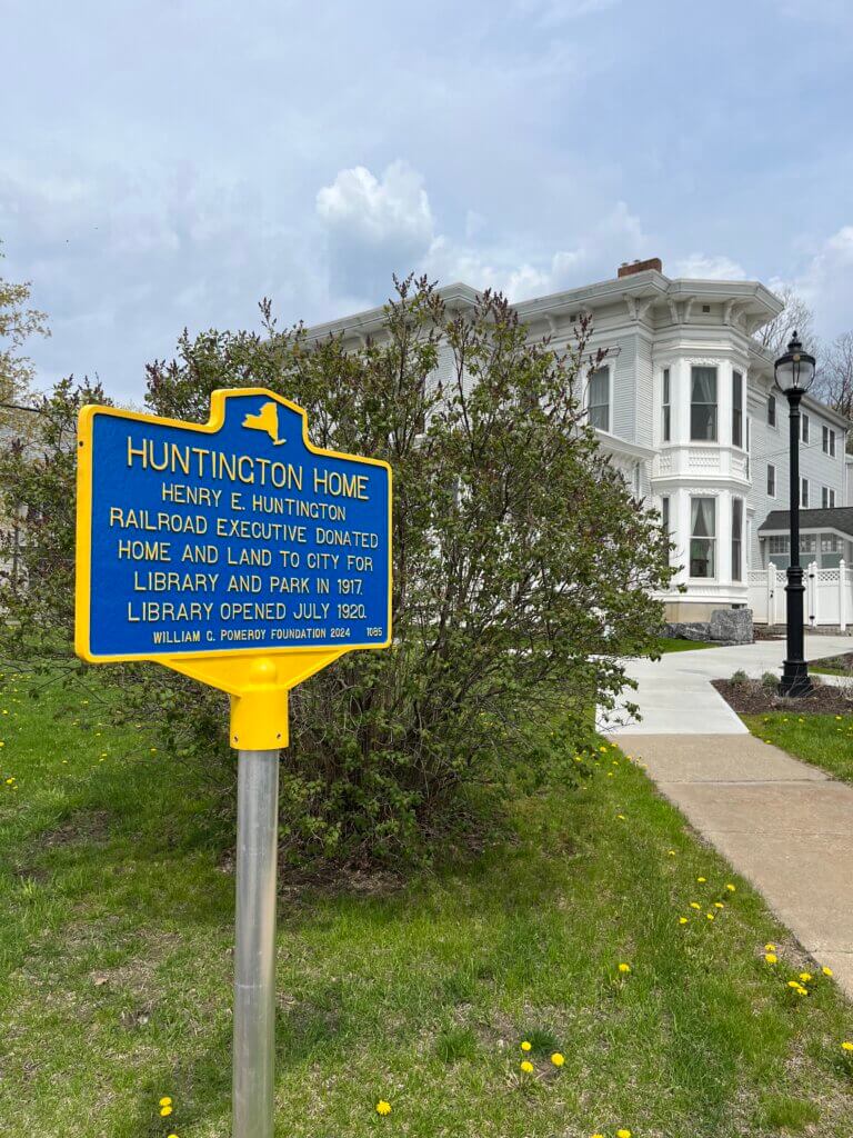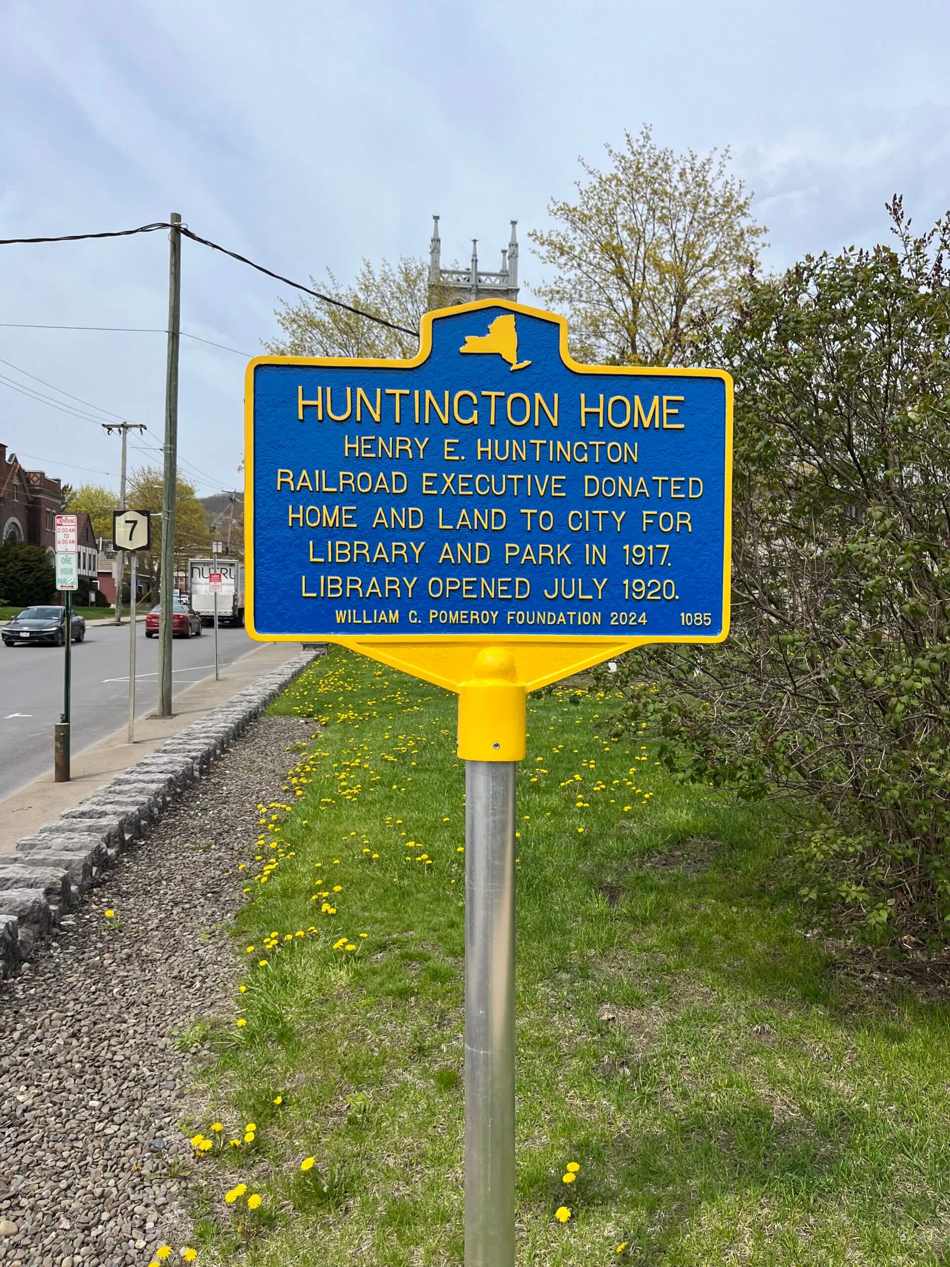 Around 1910, his interests shifted to his library and art collection, which was housed on his 500-acre San Marino, California estate. After moving to California, he would still spend time in New York, making visits to the Huntington family residence in Oneonta. In 1917, he donated the Huntington Home in Oneonta to the city for use as a public library and park in his parents’ honor. The Huntington Memorial Library in Oneonta opened in July 1920. Huntington died in 1927. Upon his death, his vast library and art collection located at his San Marino estate were given to the public, and would become the Huntington Library, Art Museum, and Botanical Gardens. He is interred in a mausoleum on the property.